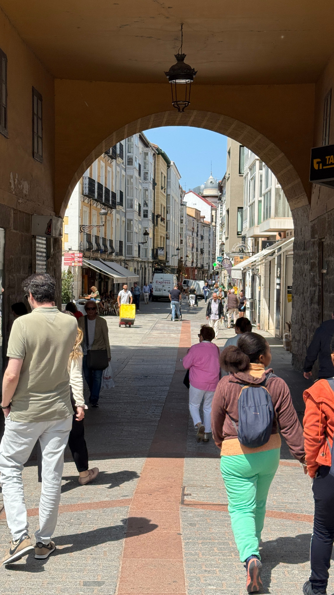 셋의 숙소인 공립 알베르게에 도착하자 문 밖에 케이틀린이 서 있었다. 멀리서부터 난 그녀를 알아보고 양 팔을 휘적거리며 인사했다. 케이틀린은 저멀리서 눈을 가늘게 뜨며 ‘내가 지금 뭘 보고 있는거지?’ 하는 표정을 보였다. 줄에 도착해 하이파이브를 치며 “내 예상보단 빨리 만났네!” 하자 “도대체 어떻게 벌써 부르고스에 온 거야? 도대체? 달려온 거야?” 하며 놀라워했다. 자기랑 걸을 땐 더 많이씩 걸은 날도 있었는데 새삼스레 왜 이런담. “너 다시 보려고 많이씩 걸었지”하고 너스레를 떨자 “푸웁” 하며 질린다는 표정을 지었다. 체크인 하고 바로 점심을 먹으러 갈거라기에 나는 한국인들과 한식당에 가기로 했다고 나중에 보자는 인사를 남겼다. 워낙 빨리 걸으니 다시는 보기 힘들지도 모른다고 생각했는데 정말 반가웠다. 아닌게 아니라 부르고스는 실로 만남의 광장이었다. 중간 경로를 어찌했든 한 번씩은 들러가는 대도시라 며칠 만에 보는 반가운 얼굴들이 많았다.