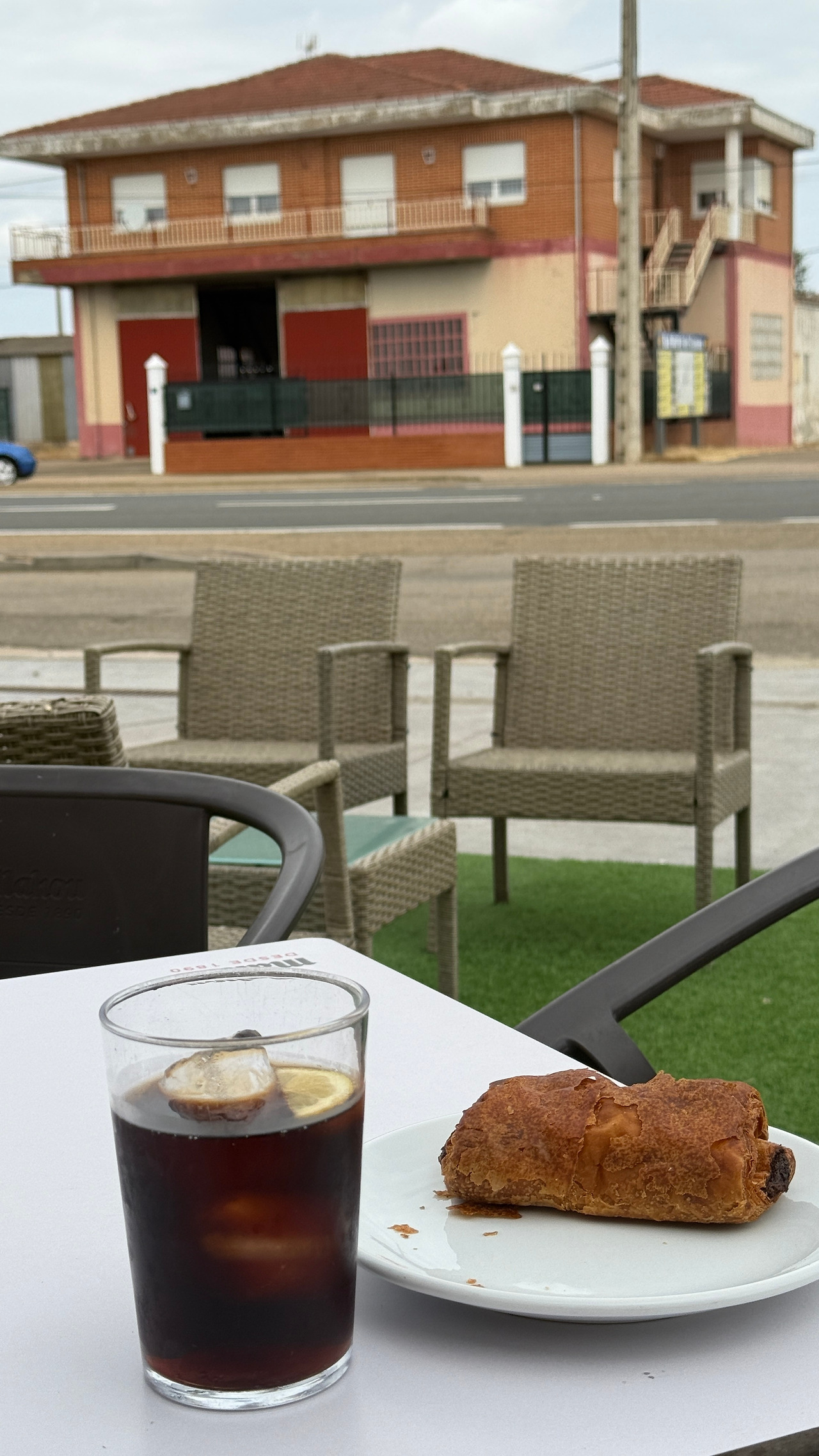다음 휴식은 25km 지점의 산 마르틴 델 까미노. 20km쯤에도 마을이 있지만, 쉬고 나서 12키로가 남아있는 것과 7키로가 남아있는 건 마음가짐이 아예 다르기 때문에 좀 더 걸어 멈췄다. 산 마르틴 델 까미노 마을 초입에 위치한 바는 호텔에 달려있던 것인 만큼 매우 번듯하고 깔끔했다. 그곳에선 제로 콜라와 초코빵을 먹었다. 상민과 현준이 뭔가 ‘쎄하다’고 했던 한국 여자분이 지나가셨다. 나는 최대한 남의 평판보다는 내가 직접 겪어본 바를 토대로 판단하고 싶어 편견을 갖지 않기 위해 노력했는데, 고개 숙여 “안녕하세요” 하고 인사하는 걸 씹길래 이건 뭐지 싶었다. 국적을 막론하고 순례길에서 인사가 씹힌 첫 순간이었다.