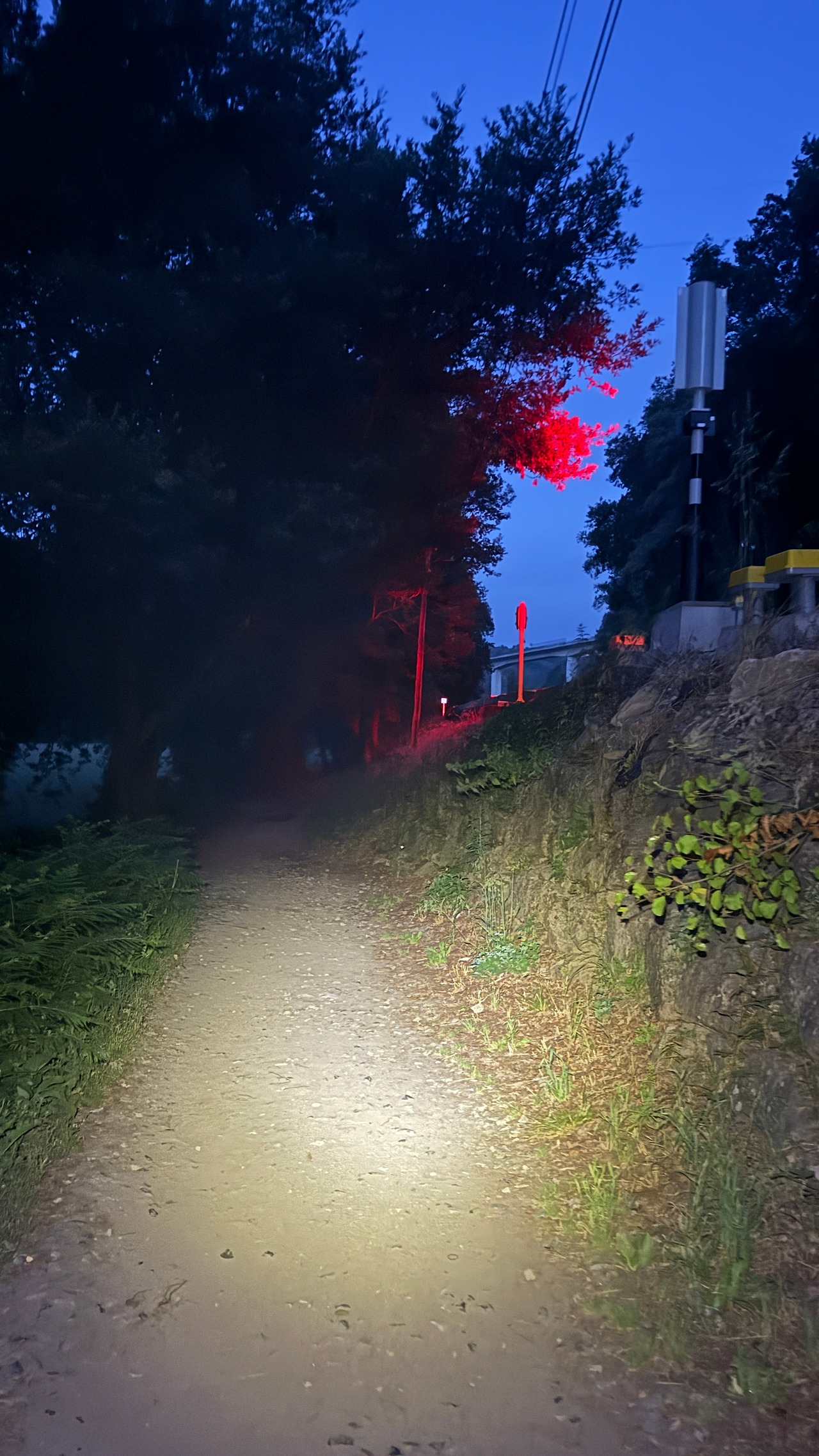 6시에 출발하는데도 헤드랜턴이 없으면 걷기 어려울 만큼 어두웠다. 그래도 날은 선선해 이참에 거리를 빼자 하고 쉼 없이 걸었다. 오늘은 마을이라고 부르기도 뭐한 아주 작은 동네들을 여러 개 지나는 경로였는데, 이른 시간 연 바는 없고 8km 지점쯤이었나 음료와 스낵을 파는 자판기가 있어 잠시 멈췄다. 앉을자리도 없어 선 채로 해치우고 또 바삐 길을 나섰다. 조금 가다 보니 진, 수빈, 상민, 현준이 바에 앉아 쉬고 있었다. 오랜만에 다섯이 함께 걸었다. 매번 쓰는 것도 지겹지만 매번 새삼스레 느끼기 때문에 또 한 번 적자면 진과 수빈은 진짜 연구 대상이다. 빨라도 너무 빠르다. 나와 상민 현준은 부지런히 뒤를 밟으며 도대체 저 속도는 어디서 어떻게 나오는 것인지를 토론했다.