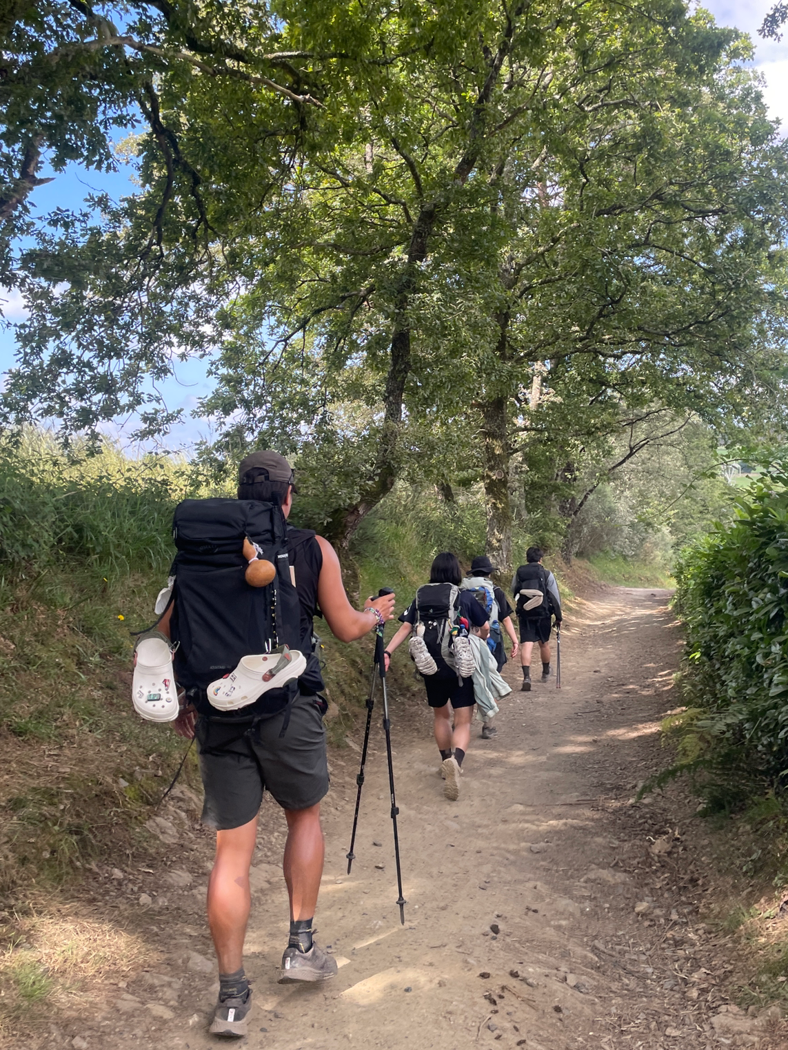 남은 거리는 약 15km. 다시 한번 ‘매드 코리안’들의 분노의 질주가 시작됐다. 눈앞의 보이는 순례자들을 모두 제치며 산길을 ‘뛰어’ 다녔다. 그냥 표현이 아니라 실제로 우리는 내리막을 주로 뛰어 내려갔다. 천천히 내려가면 발과 다리가 더 힘든 것 같고 뛰어서 단숨에 내빼면 그나마 좀 나은 것 같은 느낌 때문이었는데 물론 뛰고 나면 다리 여기저기가 쑤시긴 했다. 7키로쯤 가자 카사노바라는 마을이 나왔다. 8키로가 남아 한 번에 다 가긴 힘들 것 같아 쉬기로 했다. 커피와 이온음료 등을 시켜 마셨다. 초코케익과 커피와 얼음을 시켰는데 얼음에 따로 돈을 받는 가게는 처음 봤다. 초코케익도 비주얼에 비해 맛이 별로였는데 다 먹긴 먹었다. 다 같이 먹으라고 서비스로 준 올리브가 맛있어서 봐줬다. 물론 안 봐준들 따로 할 수 있는 건 없었다. 앉아서 쉬는 사이 가게에 가득 찼던 순례자들이 모두 가고 없었다. 우리도 떠날 준비를 하며 상민이 “100초 다 셌다. 순례잡기 가볼까~“ 하는 말에 빵 터졌다. 우리가 하는 짓에 딱 맞는 이름이어서 나는 오늘 내 일기 제목으로 쓰겠노라 전했다.