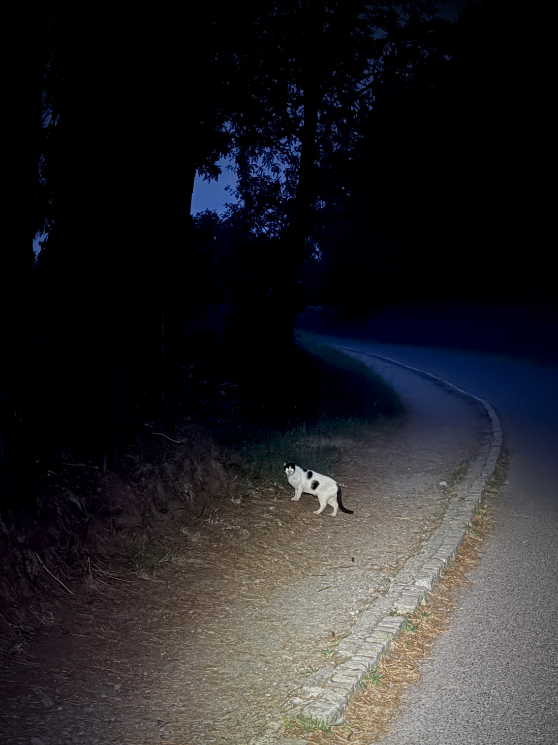 온 건물이 돌벽인 덕분인지 알베르게가 시원했다. 새벽엔 심지어 좀 춥기까지 해서 숙소에 준비된 담요를 뒤집어쓰고 자기도 했다. 어제 오후엔 너무 더웠어서 오늘은 빨리 도착하고자 기상 시간을 더 당겼다. 4시 45분에 알람을 맞추고 연기 없이 일어났다. 2층 침대에 사람이 없이 1층을 쓰는 날엔 준비가 정말 수월하다. 재빨리 준비를 마치고 길을 나섰다. 5시 15분쯤 진, 수빈, 상민, 현준네 알베르게 앞을 지나가는데 창 너머로 진과 현준이 보였다. 헤드랜턴을 껐다 켰다 하며 인사를 하고 가던 길을 갔다. 사방에 불빛이라고는 내 헤드랜턴뿐이었다. 앞뒤로 순례객도 없고 초승달빛이 길에까지 닿기엔 구름이 꽤나 두터웠다. 길을 가다 내 헤드랜턴 불빛에 반사된 눈동자 두 개가 번뜩였다. 몇 걸음 더 가보니 “닝겐이 왜 이 시간에?!” 하며 더 놀란 고양이 한 마리가 우두커니 서서 나를 바라보고 있었다.