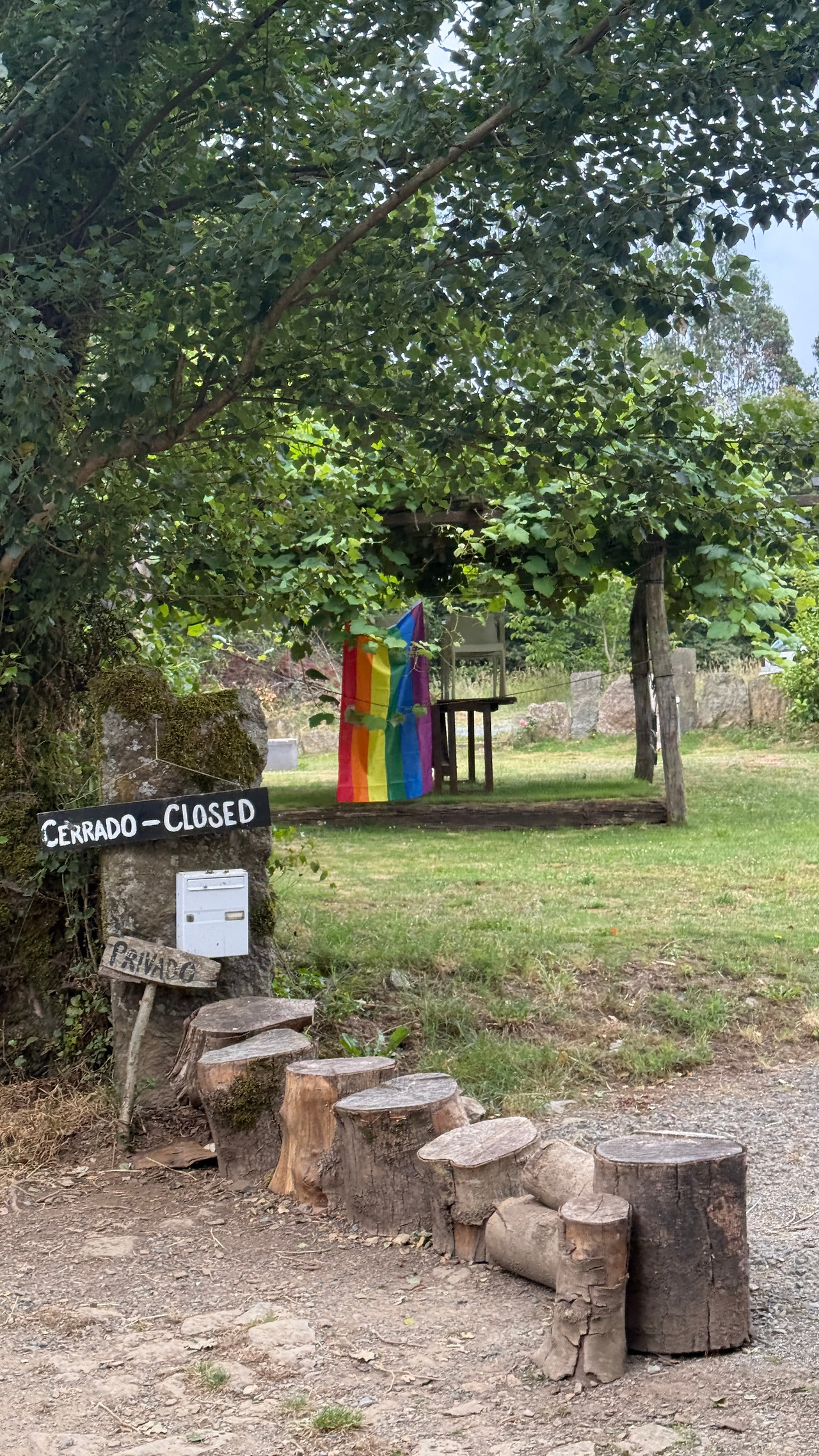 11km쯤 가 리바디소라는 마을을 지나는데 바에 앉아있는 현준의 뒷모습이 보였다. 안에 진, 수빈, 상민도 있었다. 3키로를 더 가면 큰 마을인 아르주아가 나와서 잠시 고민했으나 한 번도 쉬지 않고 온 탓에 바의 유혹을 참기 힘들었다. 아침은 먹고 나와 빵 생각은 안 들었고, 아이스크림과 라떼를 주문했다. 황치즈 색의 귀여운 고양이가 있었는데 사람 손을 잘 탔다. 머리를 쓰다듬으니 엉덩이를 두드리라며 들이대길래 통통통 쳐주니 좋다고 꼬리를 치켜세웠다. 시간을 보낸 뒤 넷과 함께 출발해 금세 아르주아에 도착했다. 화장실이 급해 보이는 아무 바에나 가서 이온음료를 한 캔 시키고 화장실에 다녀오니 진과 수빈을 필두로 한 넷은 이미 시야 밖으로 사라져 있었다. 좀 더 들고 가다 마시려고 이온음료를 손에 들고 걷다가 떨어트렸는데 박살이 났다. 아니 탄산음료도 아닌데 캔이 이리 쉽게 터지나. 2.5유로짜리 화장실에 다녀온 셈이 됐다. 캔을 구겨 좀 더 들고 가다 쓰레기통에 버렸다. 다른 얘기지만 순례길을 걷다 보면 도시도 아닌데 군데군데 커다란 쓰레기통이 꽤 많아 편했다. 누가 이걸 다 관리하지.