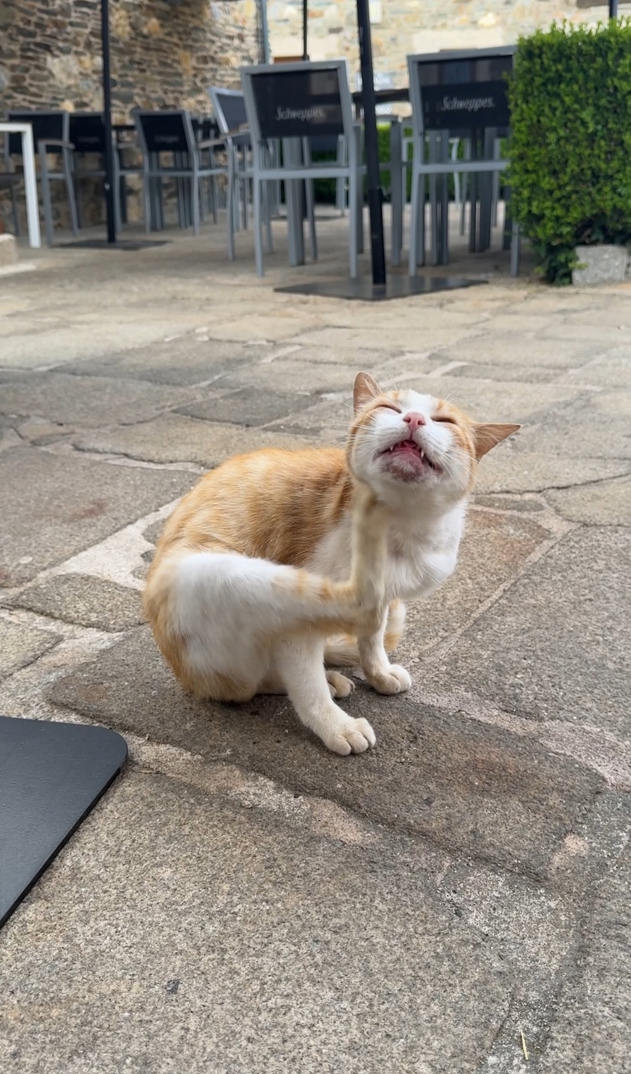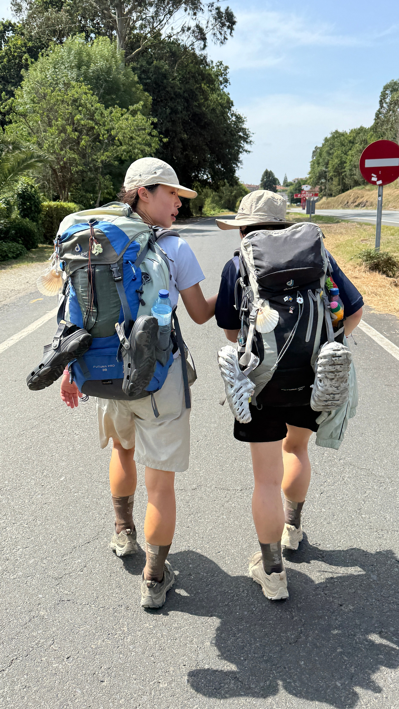 아르주아를 지나니 거의 오늘의 반을 온 셈이었다. 확실히 사리아 이후로는 사람이 많아진 데다 스페인 방학기간이라 단체로 티를 맞춰 입고 뭉쳐 다니는 학생들이 많았다. 이어지는 길은 쉴 새 없는 오르막, 내리막. 순례자들 사이사이를 뚫고 빠르게 걷다 보니 오르막을 힘들어하는 현준의 뒷모습이 가까워졌고 저어 멀리 거의 트레일 러닝을 하고 있는 진, 수빈, 상민이 보였다. 현준을 따라잡으니 자기도 느린 속도가 아닌데 다들 어찌 된 일이냐고 황당해했다. 현준과 발맞춰 조금 걷다가 길가에 귀여운 고양이가 보여 다가갔는데 전혀 피하지 않길래 또 머리를 쓰다듬었다. 사람 손을 반기는 고양이가 어찌 이리 많은지 이번엔 아예 발라당 배를 내고 누웠다. 가슴께를 쓰다듬으니 앞발로 내 팔을 안았다. 친구들을 따라잡아야겠다는 생각이 사르르 없어지는 순간이었다. ’그래 지금 길냥이가 내 손길에 배를 깠는데 뭣이 중허냐‘.