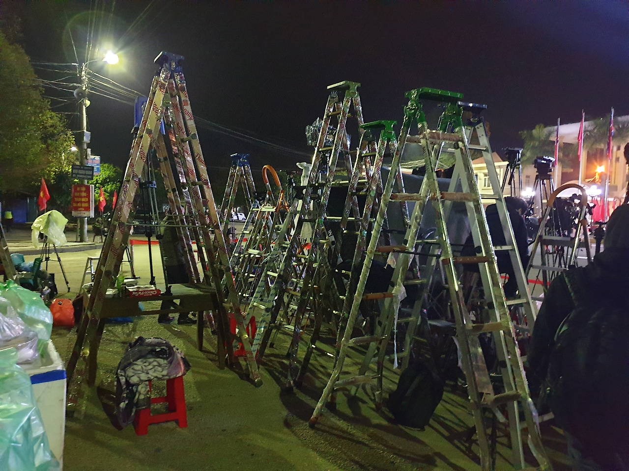 너무 추웠다. 하노이의 날씨만 찾아보고 얇은 옷만 챙겨간 나는 반팔에 바람막이 차림이었는데 몇몇은 롱패딩을 입고 있는 날씨였다. 나는 자리를 비울 수 없어 오디오맨을 통해 근처 시장가에서 모포를 두어개 사와 나눠가지고는 싸매고 있었다. (자사 선배가 그런 내 모습을 찍어 베트남 출장팀 단톡방에 올리고는 대신 엄살을 부려줬다.) 밤이 되며 비까지 와 나를 포함한 많은 취재진들이 추위에 떨었다.