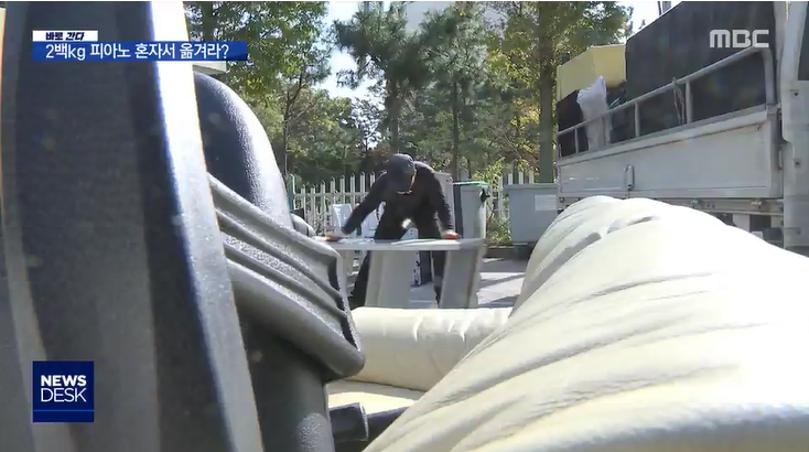 [바로간다] 2백kg 혼자 '끙끙'…대형폐기물 '신음'하는 노동자 ◀ 기자 ▶ , 인권사회팀 이유경입니다. 피아노나 장롱같이 크고 무거운 물건을 버리려고 내놓으면 폐기물 처리업체에서 수거를 해갑니다. 이런 대형 폐기물은 안전문제가 있기 때문에 반드시 두 명의 작업자가 옮기도록 규정돼 있습니다. 하지만 작업자 혼자서 부상과 위험을 감수...