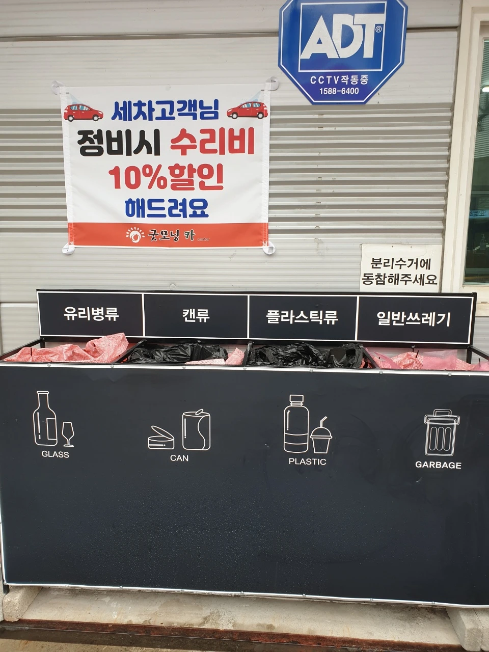 세차장 손님들이 가장 많이 다니는 곳에 붙여진 현수막