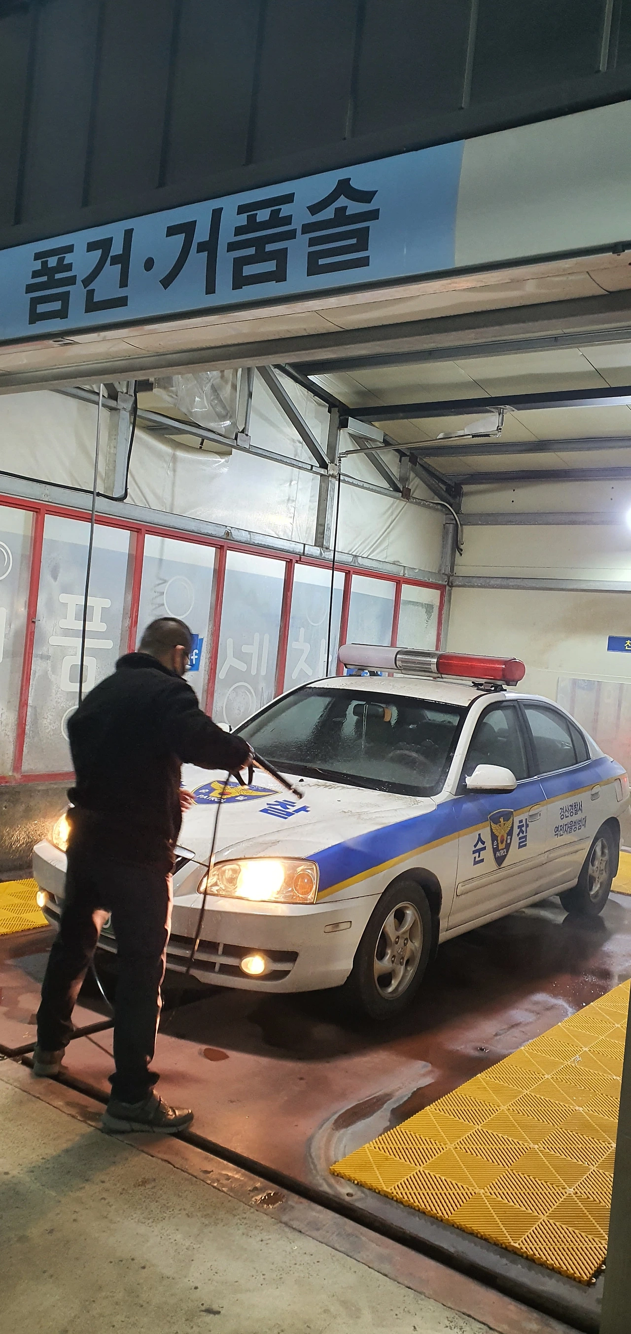 "지금 세차돼요?" 헉, 경찰차가 온 이유는 단지 세차가 목적이었다. 안도의 한숨이 쉬어졌다.