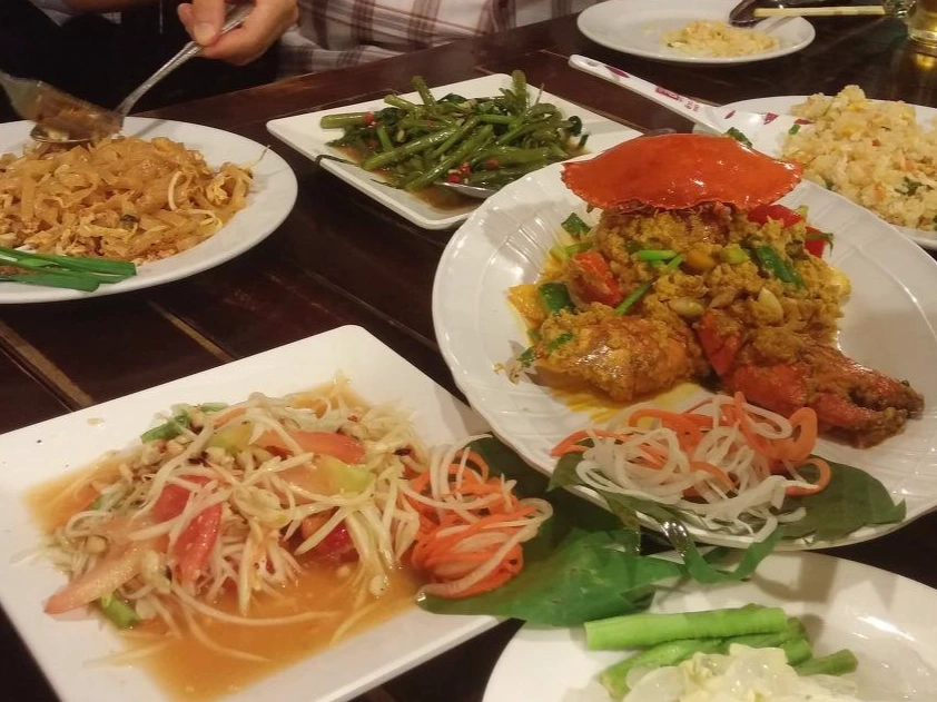방콕은 싸고 맛있기로 소문난 해산물 레스토랑이 많다. 잘 알려진 태국 요리인 꽃게를 넣어 만든 커리나 새우 구이, 볶음밥, 볶음면, 쏨땀 등을 즐겨먹게 되는데, 평소에 잘 접해보지 못했던 음식 중 놀라운 감동의 맛을 안겨준 건 고기도, 해산물도 아닌 모닝글로리라고 불리는 채소 볶음이었다. 태국어로는 "팍풍"이고 우리나라에서는 "공심채"라고 부른다는데 사실 방콕 여행 이전에 먹어본 기억이 없다. 보통 태국 요리라고 하면 워낙 화려하고 맛있는 아이템이 많아 메뉴판 어딘가에 쓰여 있었다고 해도 쉽게 눈이 가지 않았으리라. 방콕에서 먹어보기 전에도 채소가 맛있어야 얼마나 맛있으랴 하고 손을 대지 않았었는데, 한입 먹어본 후에는 자꾸만 손이 가서 멈출 수 없었던 요리였다. 현지 유학생에게 들어보니 모낭글로리 채소 볶음은 한국 여행객에게 가장 인기있는 요리 중 하나라고 한다.