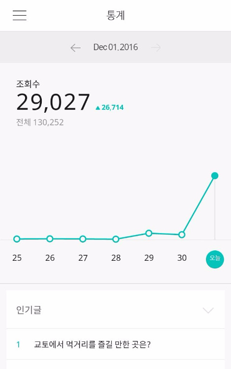 11월 29일 이후 브런치 알림이 폭발했다. 드르륵 드르륵 계속 진동이 울린다. 몇 시간 전에 올린 교토 여행 관련 포스팅의 조회 수가 1000, 2000, 3000을 넘겼단다. 한 시간에 1000명씩 내 글을 읽고 있다고?