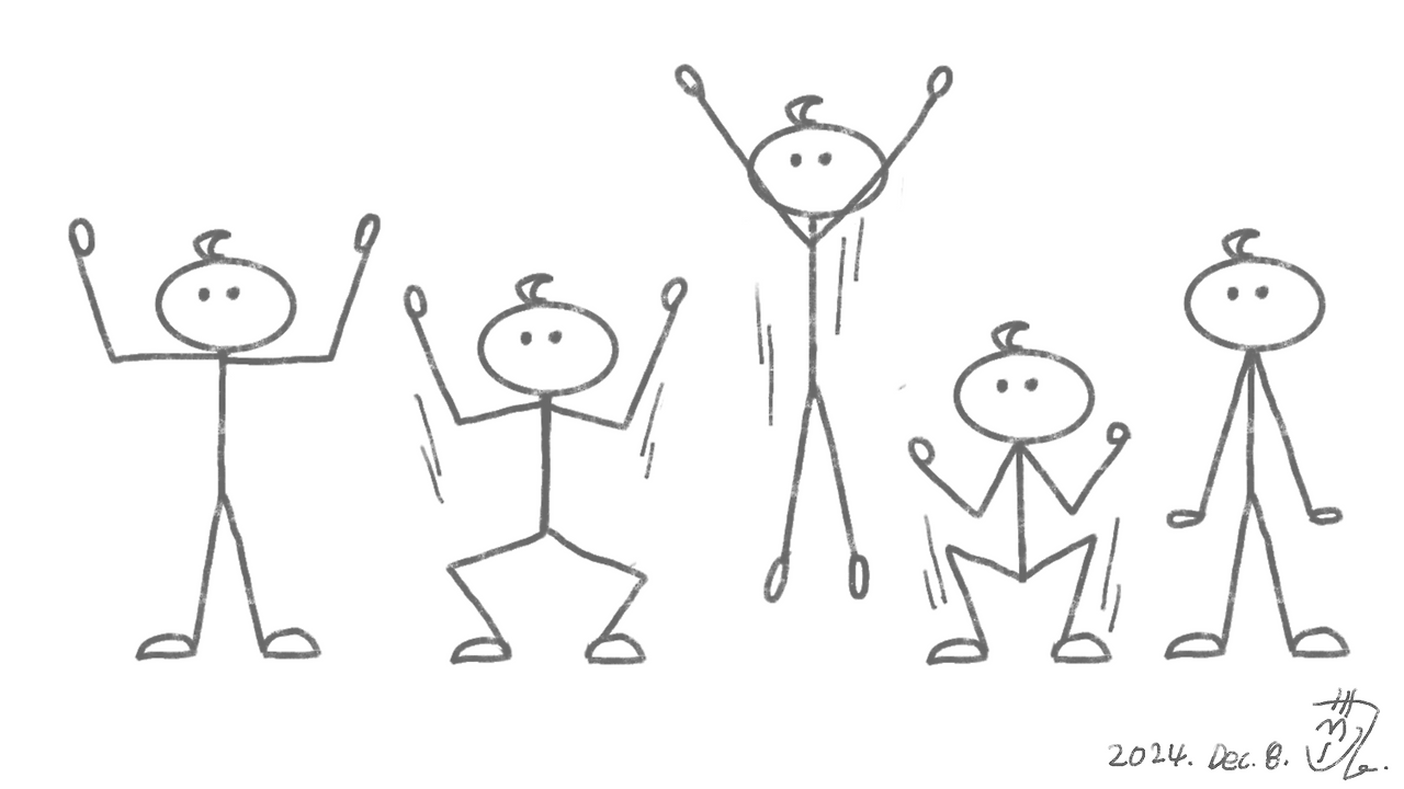 아마도 첫 학기 첫 애니메이팅 animating 수업이었을 것이다. 애니메이팅 강사가 갑자기 팔을 옆으로 꺾어 쳐들고 앞을 본채로 옆으로 점핑을 한다.