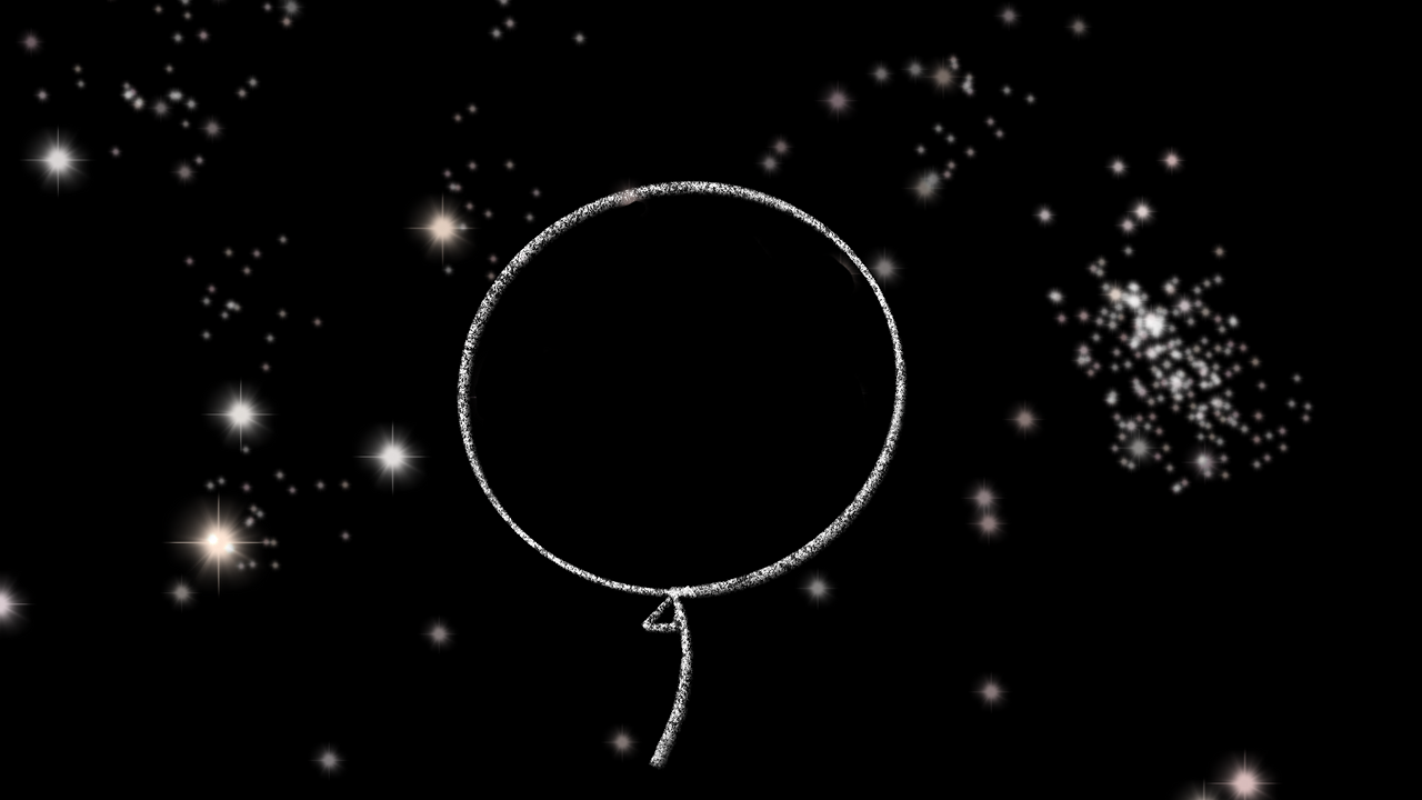 배경을 어둠게 하고 별만 그려 넣으면 풍선이 우주 공간에 떠있게 된다. 불가능이 가능하게 된다.