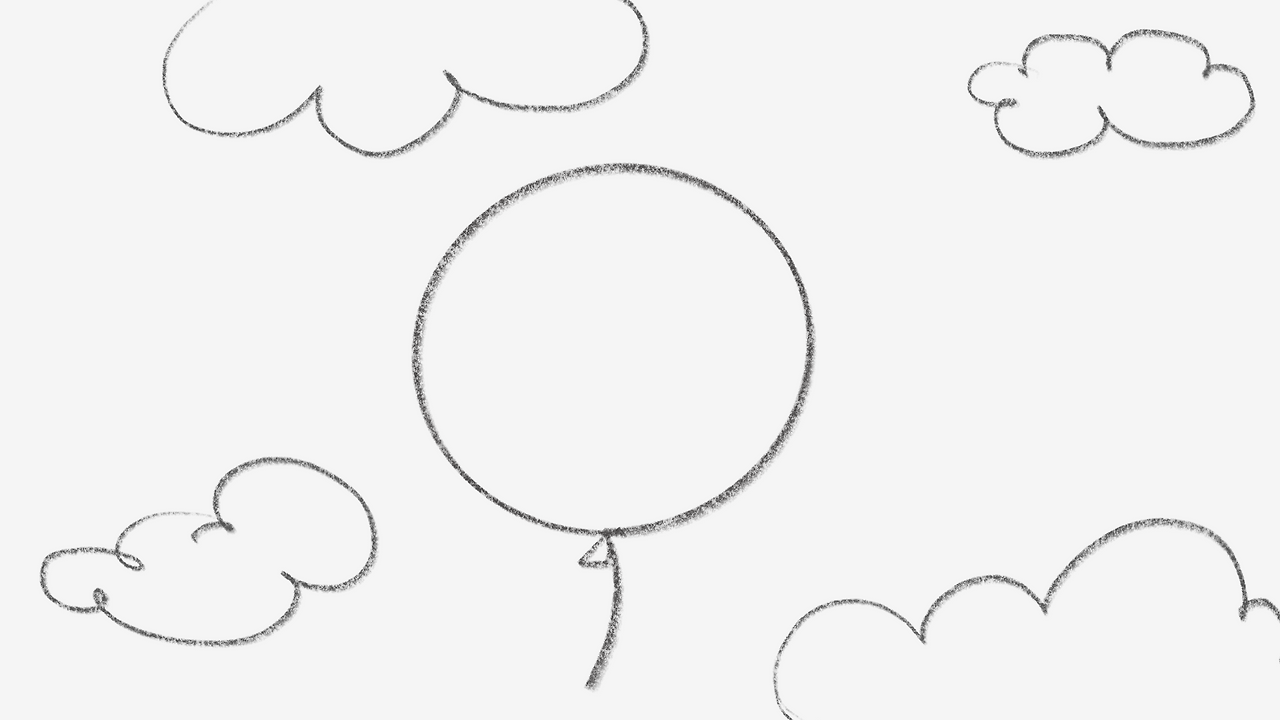똑같은 풍선 뒤에 구름만 그려 넣으면 하늘에 높은 곳에 떠있는 풍선이 된다.
