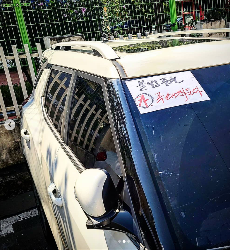 내리며 보니 이미 그 눈치없는 차는 눈치없이 무단주차를 한 모양이다. 전면유리에 넓적하게 붙은 경고장은 빨판처럼 찰싹 붙어있었다. 빨간 매직으로 제법 정성껏 눌러쓴 "불법주차-족쇄채운다"는 그 말에 실린 증오가 내 몸에 묻을까 봐 어깨를 털고 돌아서는데