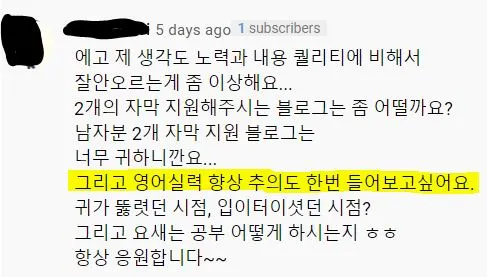 며칠 전 유튜브 구독자 한 분이 댓글을 남겨주셨다.