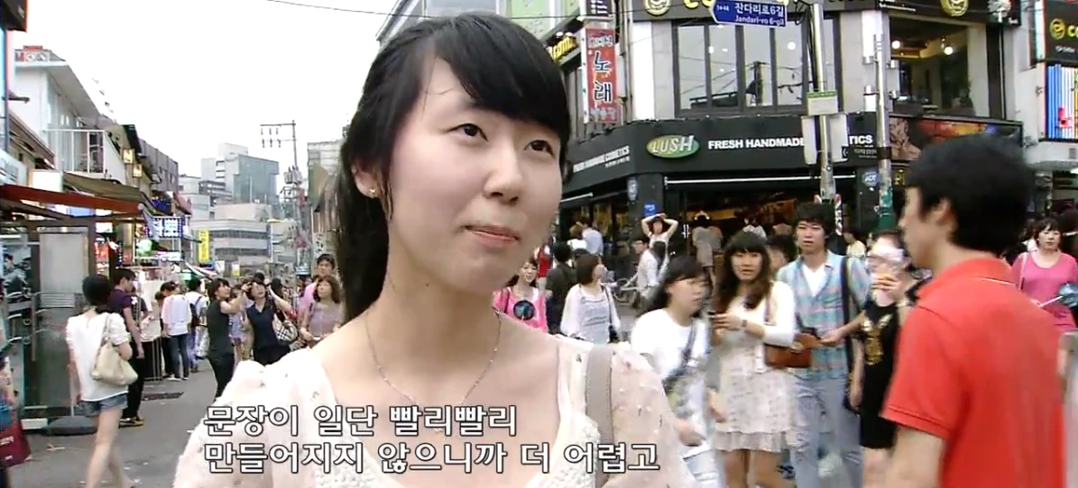 참여자들이 가지고 있는 공통적인 문제점이다. 그리고 정확히 우리의 문제이기도 하다. 문장을 빨리빨리 만들지 못한다. 얼마나 수준 높은 단어를 쓰고, 얼마나 정확하게 말하는가를 떠나서 영어로 말할 때 매우 버벅거린다.