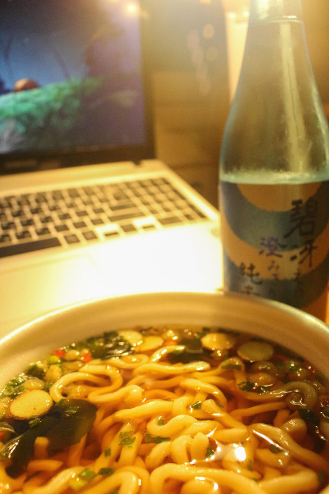 역시나 살아봤던 시간으로 불려 갔다. 그렇지만 내 습관이 과거와 똑같진 않다. 올 해는 우동 옆에 전날 사온 사케 한 병을 두고 반주를 했으니까. 몇 잔 마시다가 입가심으로 롱티도 한잔 말았고.