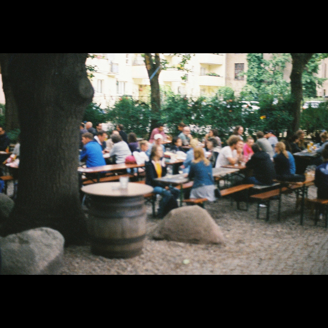 베를린 가이드가 되어준 C의 소개에 따르면 '전문 술집은 아니고, 사설 기숙사 건물에서 맥주를 직접 만들어 파는 곳'이었다. 왠지 밀주를 팔 것 같은 설명에 걸맞게 위치도 음성적이었다. 따분할 정도로 조용한 주택가에서 굴다리처럼 생긴 짧은 통로를 지나자 나타난 웬 아파트 단지 내 공터처럼 생긴 곳이 나타났고, 거기엔 맥주 마시는 사람들이 차있었다.