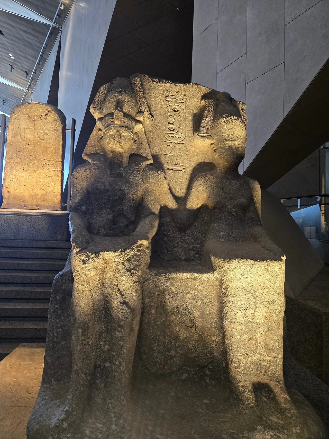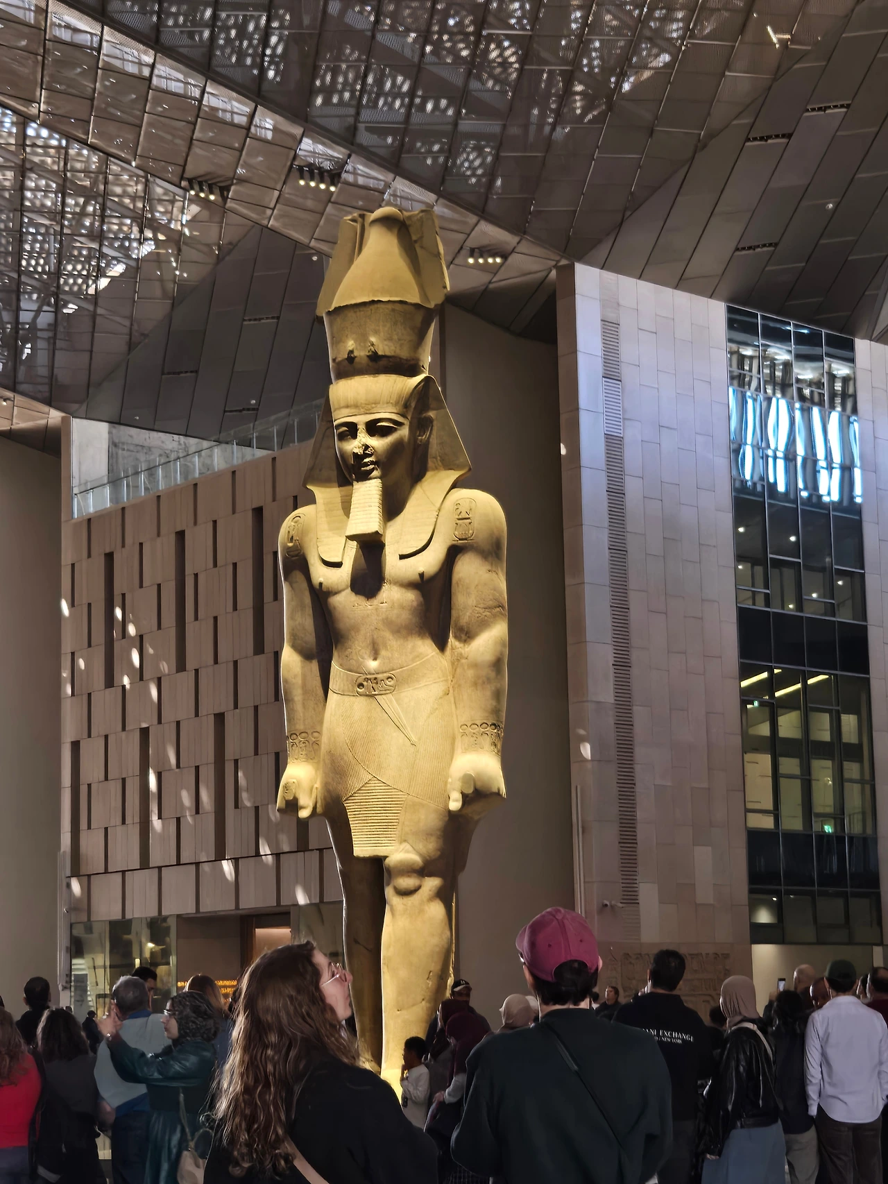 그랜드 이집트 박물관(GEM) 로비(아트리움)에 서서 관람객을 내려다보는 이 석상이 바로 람세스 2세다. 이 거상은 원래 고대 수도 멤피스에 세워졌던 것으로 여러 차례 이전 끝에 오늘날 GEM의 중심이 되었다. 2018년에 가장 먼저 이곳으로 옮긴 다음 박물관의 지붕을 덮었으니 그가 이 건물의 주인이나 다름없다.