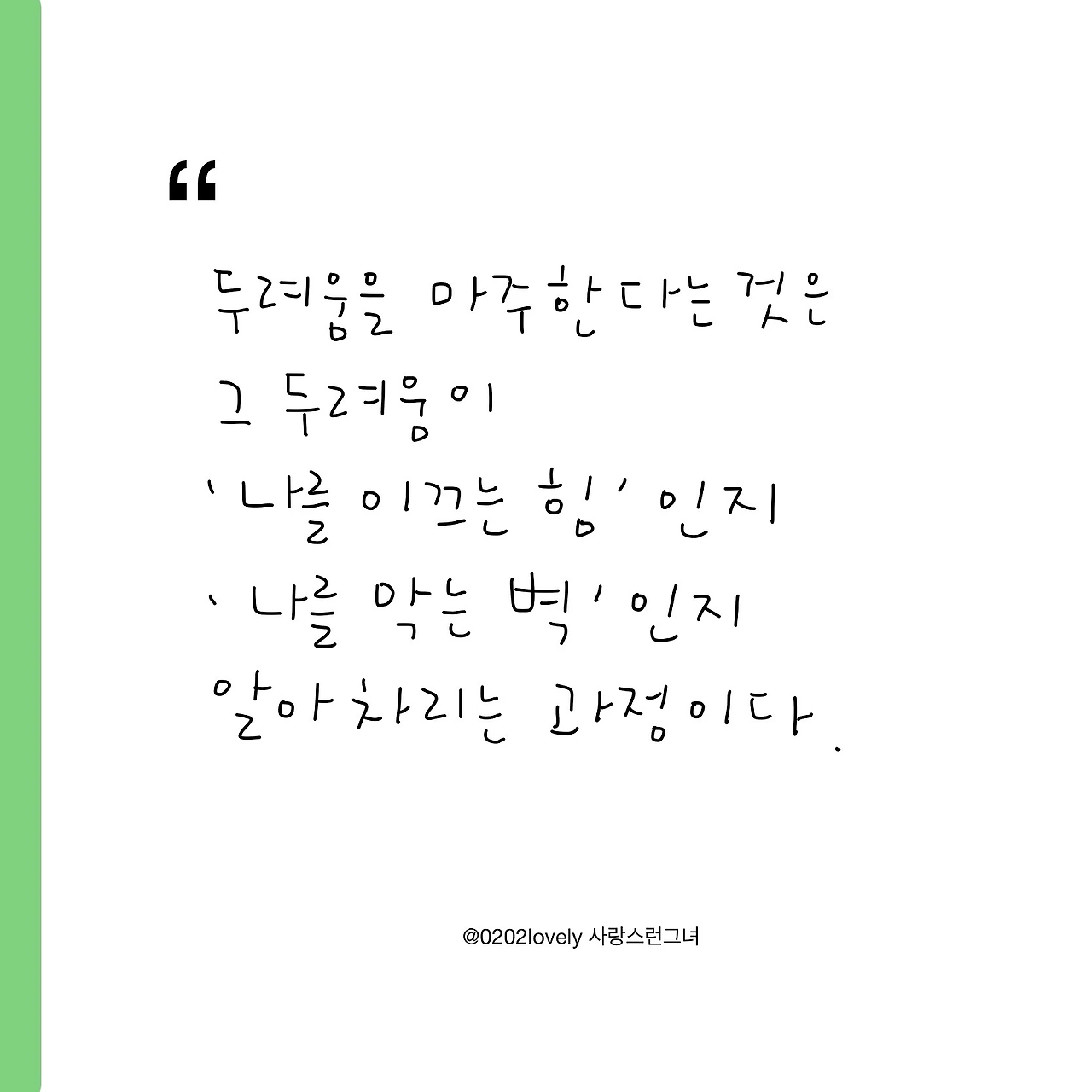 두려움을 마주한다는 것은 그 두려움이 '나를 이끄는 힘'인지 '나를 막는 벽'인지 알아차리는 과정이다.