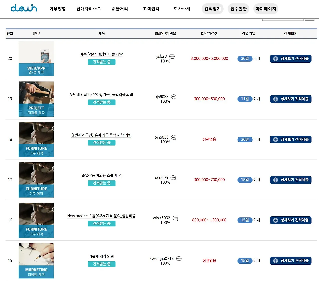 여러 업체의 견적을 받아 주는 것인데 견적요청을 하게 되면 대부분의 업체에서는 견적을 제출하게 된다. 바로 수익으로 이어지기 때문이다.