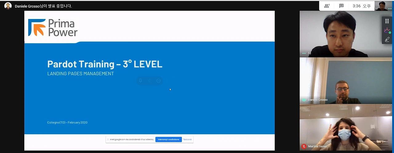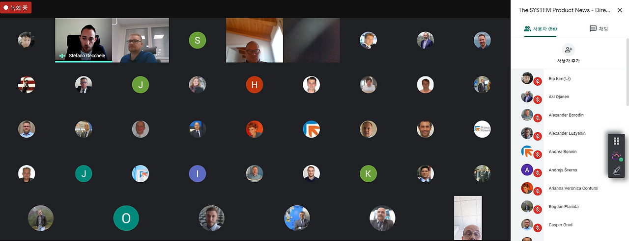 실시간으로 하기 때문에 시차로 인한 불편함이 발생될 수는 있다. 우리 회사 같은 경우에는 이탈리아 회사이기 때문에 8시간의 시차가 발생한다. 이탈리아에서 최대한 아침 일찍 웨비나를 시작하게 되면 한국 등의 아시아 국가에서는 오후 퇴근하기 전의 시간에 웨비아를 참여할 수 있게 된다. 아래 캡처를 보게 되면 티비 프로그램처럼 두 명의 사회자가 진행을 하며 신제품을 소개하고 있다.