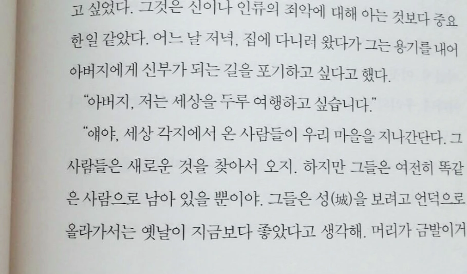 이 책을 읽고 나서 생각들이 많이 바뀌게 된 것 같습니다. 특히 파울로 코엘료의 책을 읽다 보면 기존에 가지고 있던 생각들에 변화가 생기는 것을 느끼곤 합니다.