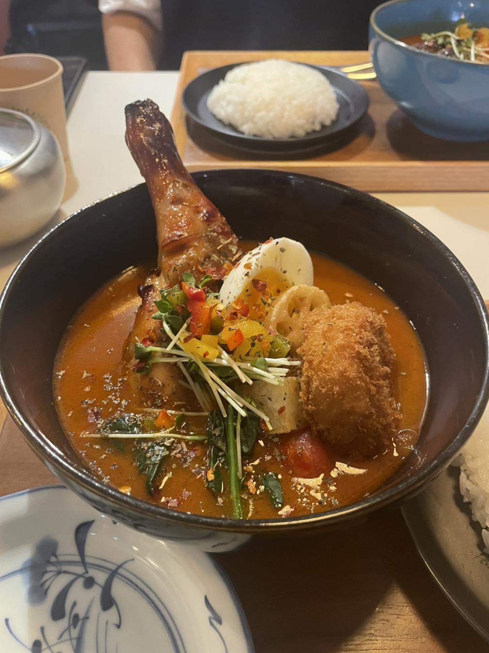 목요일엔 게임 모임에서 알게 된 5~6년 지기 형님을 만났다. 내가 현충일 전 목요일에 쉰다고 하니 선뜻 반차까지 써서 나와준 고마운 분이다. 나를 보자마자 살이 많이 빠졌다며 안 그래도 없는 얼굴이 반쪽이 된 것 같다고 능청스럽게 말하셨다. 우리는 수프카레를 먹게 되었는데. 나는 이전에 삿포로에서 담배 냄새에 쫓겨 불쾌하게 수프카레를 먹었던 적이 있어 먹기를 꺼려했지만, 형님이 너무 먹어보고 싶다고 하셔서 먹게 되었다. 이전과 다르게 이번에는 쾌적한 환경에서 맛있게 수프카레를 즐길 수 있었다. 매콤한 맛, 적절한 간, 느끼하지 않은 토핑까지 모두 만족스러웠다. 저녁만 먹고 헤어지기는 아쉬워 우리는 카페로 이동하였다.