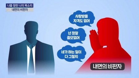 내가 나를 자연스럽게 받아들이지 못하고 늘 스스로 못마땅해하며 남의 눈치를 보면서 행동하는 사람은 내면의 비판자가 강한 사람이라고 할 수 있다. 초자아가 강한 성향이거나, 부모님의 엄격한 양육방식을 흡수했거나, 예민한 기질을 타고나 부모의 훈육의 크게 손상을 입는 등, 내면의 비판자가 강화되는 이유는 다양하다.