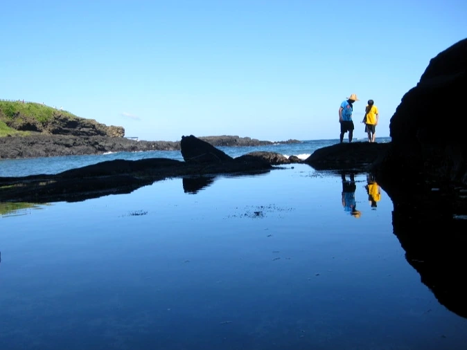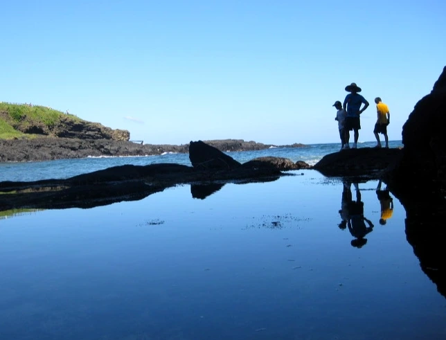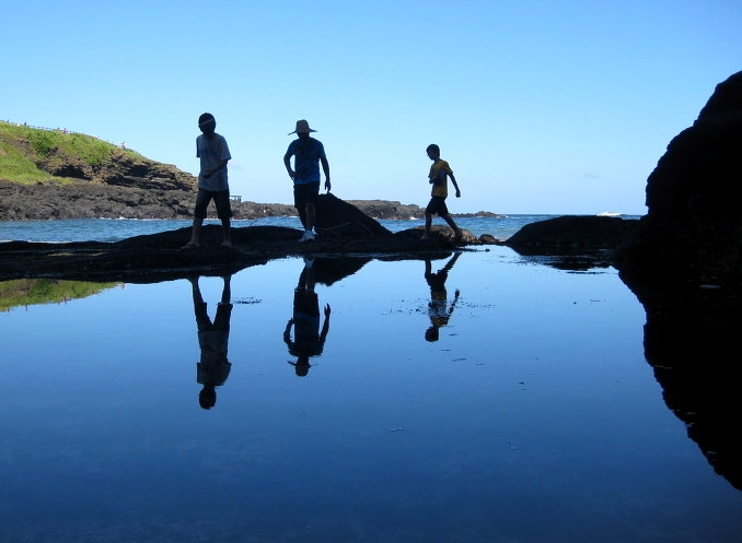 우도 팔경 중 하나인 '검멀레 해변'은 우도 동남부에 위치한 해수욕장으로 해안 모래가 모두 검은 모래로 이루어져 있어 검멀레라는 명칭은 검은 모래사장에서 유래했다. 불과 백여 미터밖에 되지 않는 작은 해안이지만 재미있게도 동굴이 존재한다. 해안의 규모와 더불어 동굴 역시 작은 동굴이다. 해변과 동굴 안에는 관광객들이 오가며 쌓아 올린 돌멩이 탑이 파도와 바람에도 건재하다. 도로에서 계단으로 내려가면 해변 입구로 들어설 수 있지만 썰물 때가 되어야 '검멀레 동굴' 안으로 들어갈 수 있다. 순간 포착으로 재빠르게 얻은, 물빛과 어우러진 푸른 반영 사진 여러 장이 오래도록 마음에 남는다.
