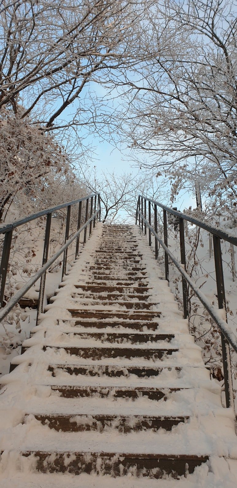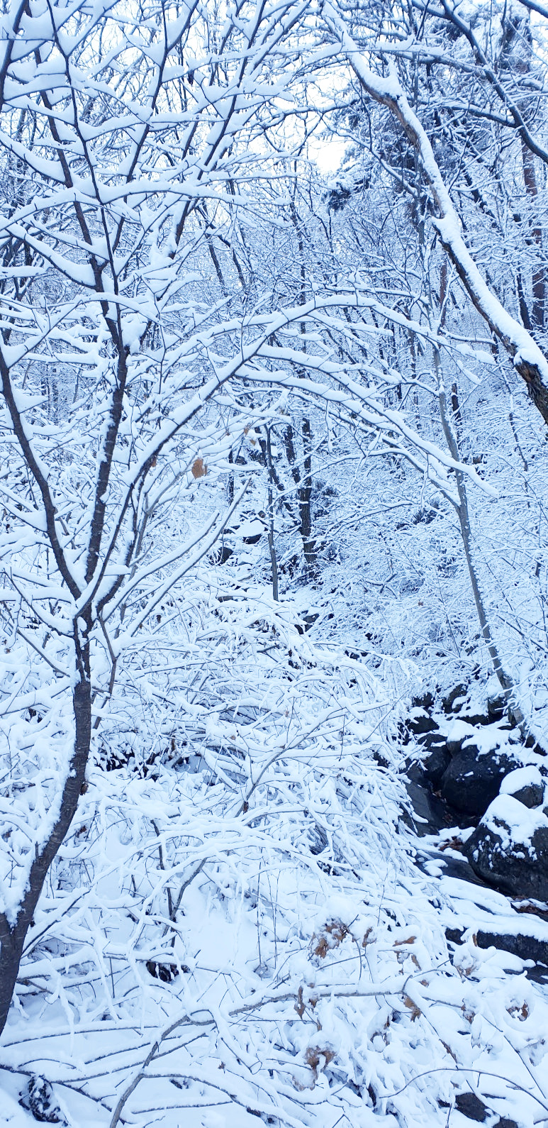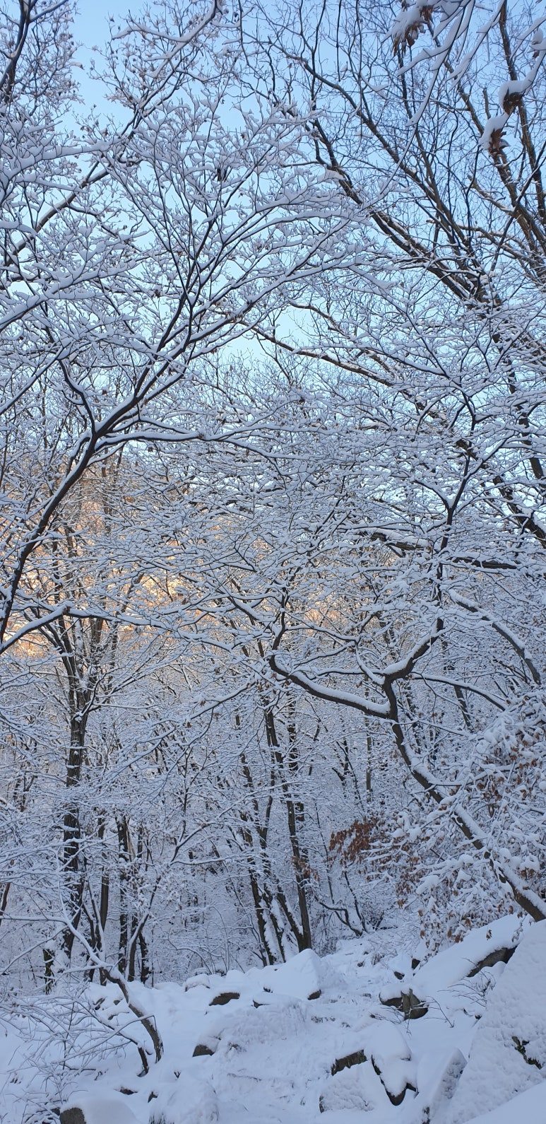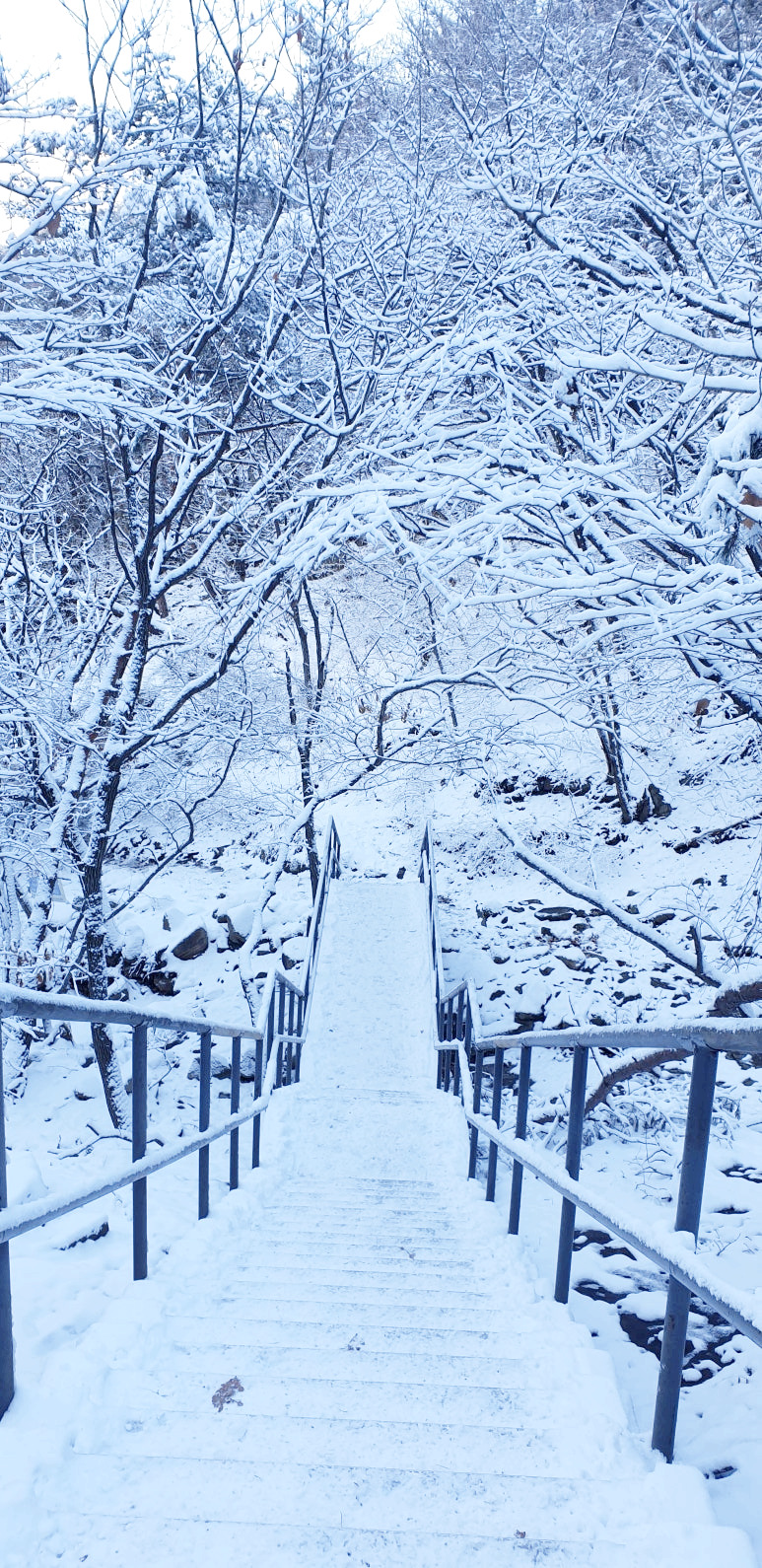 온 사방을 둘러보아도 눈, 미칠 듯이 기쁜 눈 세상이다. 겨우내 나뭇잎 하나 없이 제 몸으로만 서 있던 겨울나무에 눈이 쌓이니 상고대와 눈의 무게를 못 이기고 휘어진 나뭇가지가 환상적인 눈꽃 터널을 이루며 관악산 바위들과 어우러져 걸음을 옮길 때마다 동양화 같은 풍경이 그려진다.