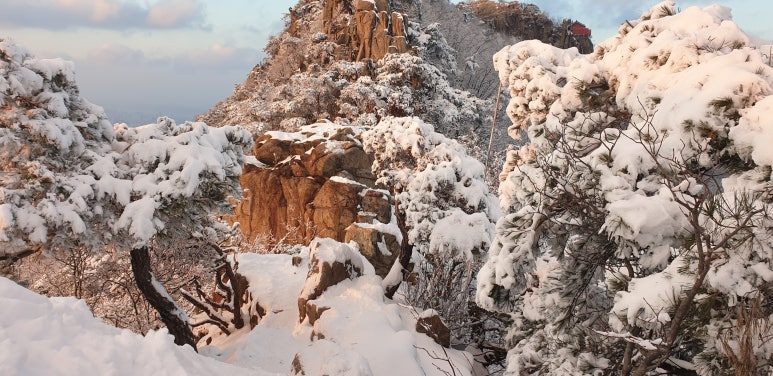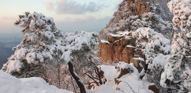 관악산은 답답함 없이 탁 트여 서울 시내가 한눈에 다 보이는 시원한 전경이지만 정식 등산로 부근은 오르는 동안 멋있고 아늑한 곳이 많다. 산등성이와 눈앞에 펼쳐진 하얀 눈은 품고 있던 쓸데없는 생각들을 일순간 정리하며 금세 마음을 환하게 만든다.