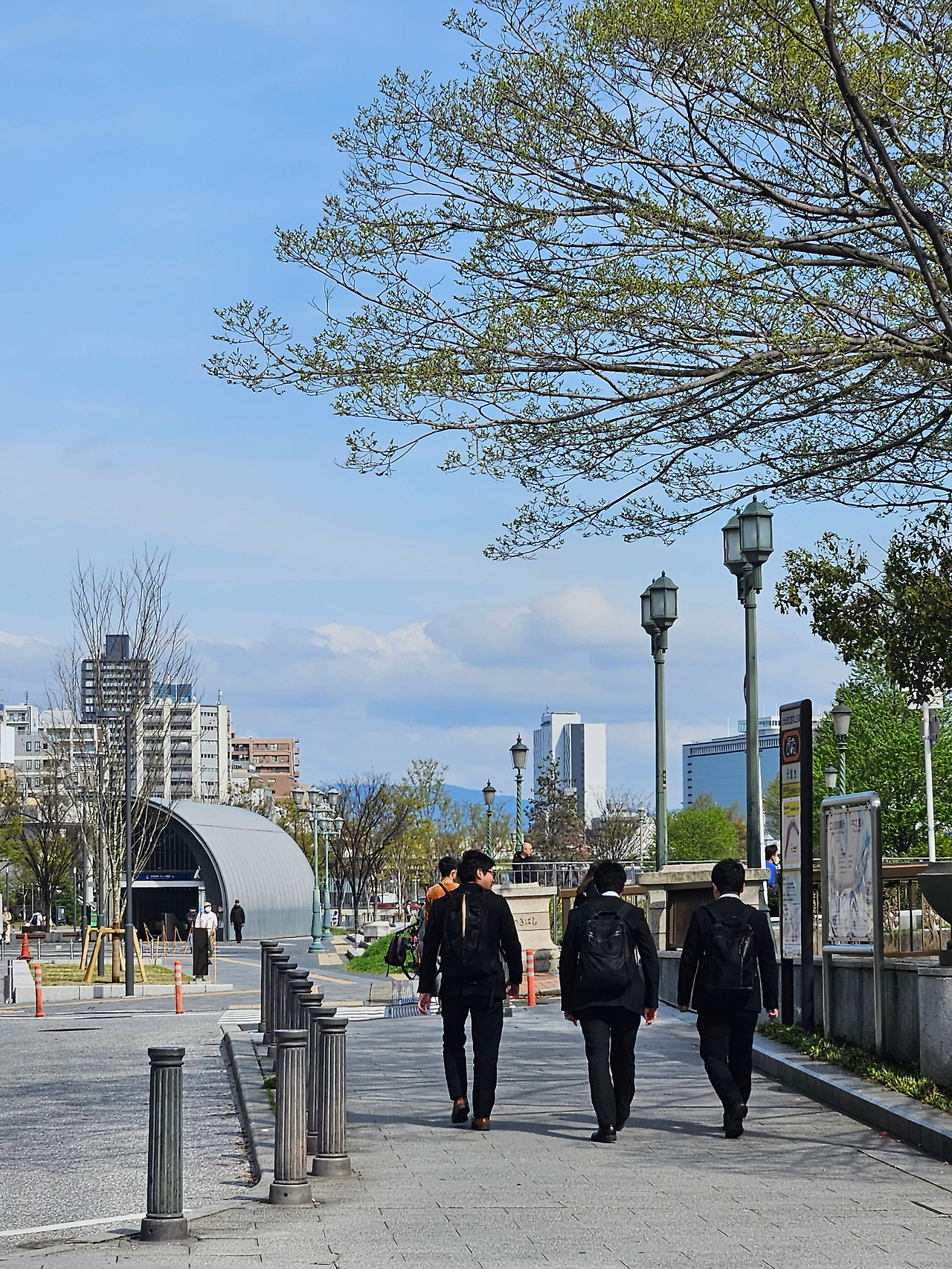 4월에는 개학과 개강만 있는 것이 아니다. 많은 일본 회사들의 신입사원 입사와 신입교육 역시 이 시기에 이루어진다. 간사이 국제공항에서 오사카 도심으로 들어가던 때는 퇴근 시간 무렵이었다. 남녀 할 것 없이 새까만 정장을 입은 무리가 삼삼오오 타기 시작했다. 처음엔 '아, 신입사원들이구나.' 정도로만 생각했는데, 그 수가 많아도 점점 많아진다. 나중에서야 알고 보니 신입사원 교육 기간이라 저렇게 함께 교육을 받고 퇴근한다는 것을 알게 되었다. 전 세계적으로 수시 채용이 아닌 공채 제도를 운영하는 나라는 대표적으로 한국과 일본 정도밖에 없다고 한다. 공채가 끝나고 적게는 수 명에서 많게는 수백 명이 동기라는 이름으로 하나로 묶인다. 특히나 조직에 대한 소속감을 중요시하는 한국과 일본만의 독특한 조직문화는 이러한 제도에서 기인하지 않았을까 생각했다.