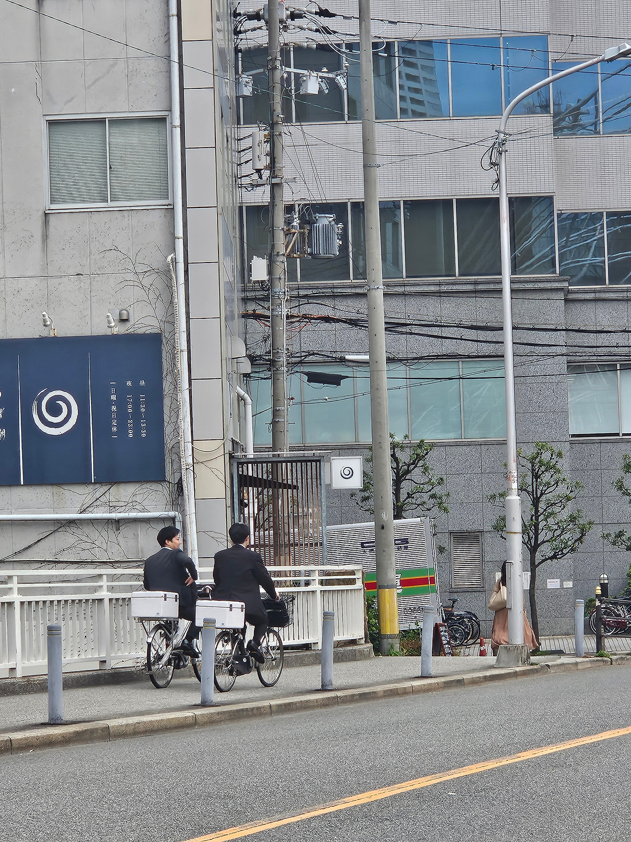 소속감과 일체감을 중요시하는 일본의 조직문화를 대변이라도 하듯, 일본의 상당수 직장인들은 전형적인 정장을 입고 출근하는 경우가 많다. 컬러마저도 대부분 단조롭다. 흰색 와이셔츠에 새까만 정장. 우리처럼 네이비나 그레이 계열의 정장도 아니다. 우리로 치면 장례식장에서 상복으로 입을 만한 정도의 컬러감 없는 새까만 정장을 많이들 입는다. 특히 신입사원은 아마도 반드시 이러한 새까만 정장을 입어야 하는 것이 암묵적인 룰인지 내규인지 싶을 정도로 전부 새까만 정장을 입는다. 11년 전 오사카에 처음 왔을 때, 길을 잃고는 지나가는 새까만 정장을 입은 직장인에게 더듬더듬 길을 물은 적이 있다. 우연히 만난 그는 한국어 가능자였다. 그때도 궁금했던 터라 왜 이렇게 새까만 옷을 다들 입고 다니냐고 물었다. 그는 멋쩍어하며 신입사원 교육 기간이라서 그렇다고 답해주었다. 그때 이후로 새까만 정장을 입은 앳되어 보이는 이들을 만나면, "아, 신입사원이구나." 하고는 속으로 생각한다.