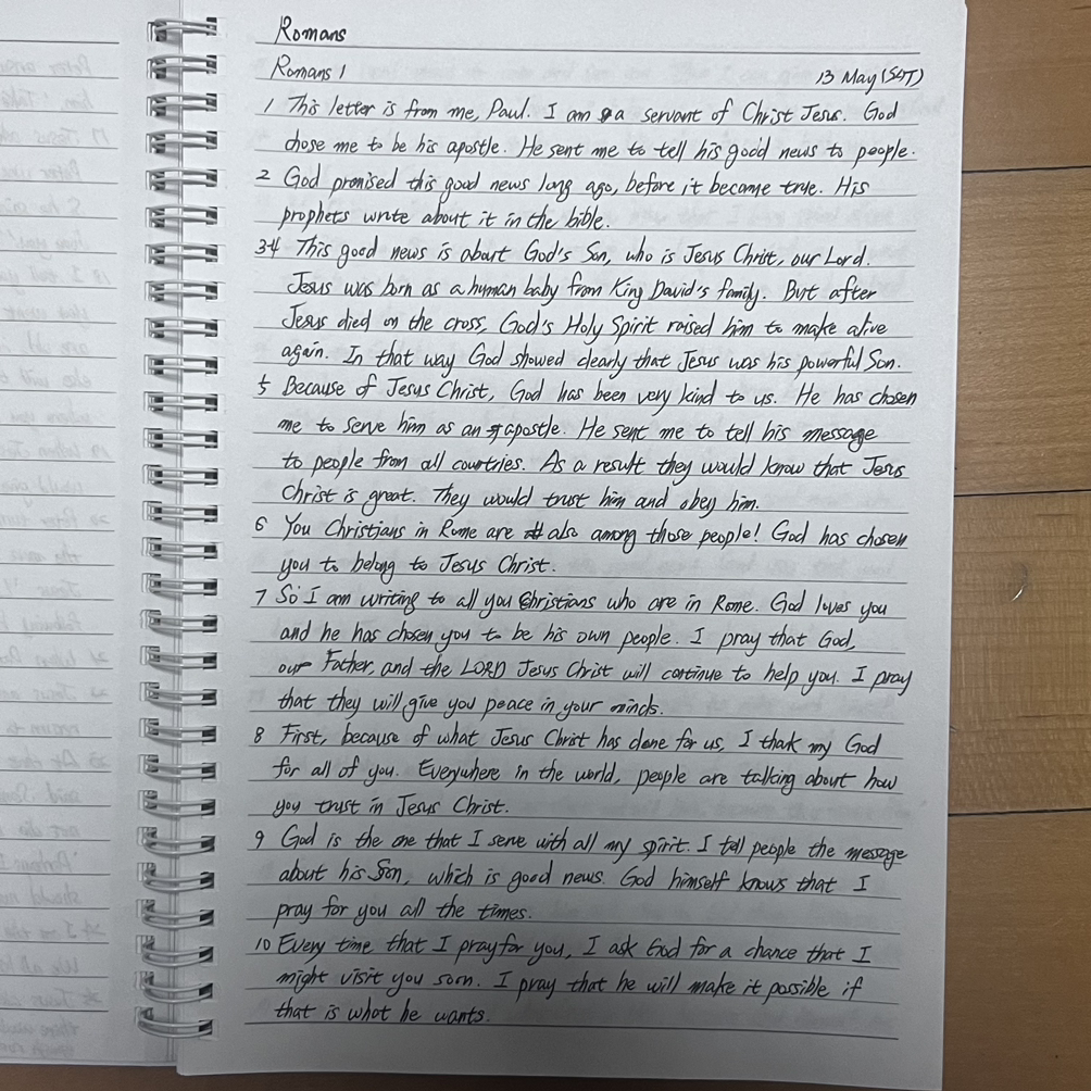 지금은 내가 가장 좋아하는 성경인 로마서를 쓰고 있다.