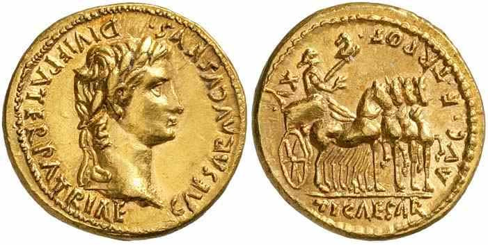 고대 로마의 동전에는 황제의 흉상을 그려넣는 일이 많았다. 정작 돈의 가치는 딱 봐서는 잘 모르겠다. 대부분의 사람들이 글을 모르던 시대, 사람들은 아마 이 그림을 보고 진짜 동전인지 아닌지, 동전이 어느 정도의 가치를 가졌는지 구별을 했을 것이다. 그러니까 당연히 흉상이 그려진 쪽이 앞면, 동전의 머리가 되었을 것이다. 사진 속 동전도 마찬가지다. 아우구스투스 황제의 멋들어진 프로파일이 새겨진 왼쪽이 앞면, 오른쪽의 뒷면에는... 음 심지어 액면가도 적혀있지 않네. 일반적으로 인물상이 그려져 있는 쪽이 중요한 앞면으로 여겨지던 전통이 이어져서 오늘날 우리나라의 동전의 앞뒷면의 결정에까지 영향을 미쳤다고 볼 수 있겠다.