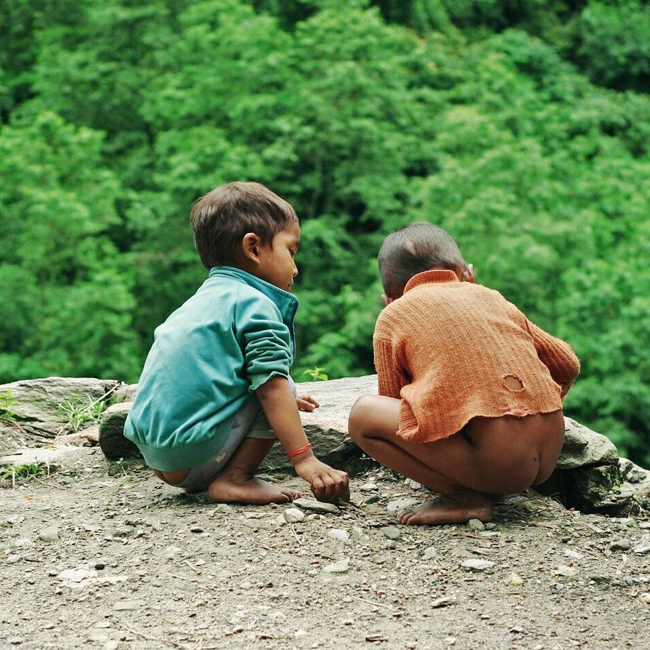 네팔 국경. 아이들은 흙과 나무를 만지며 하루를 놀았다.