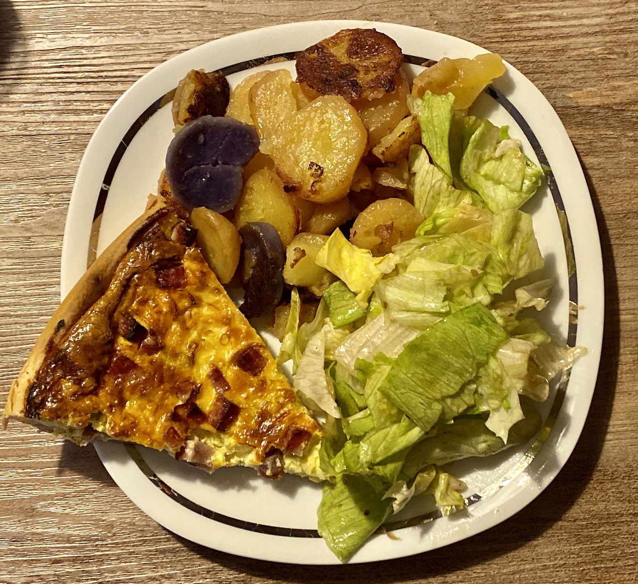 저녁 식사 메뉴는 키쉬와 감자 그리고 샐러드였다. 샐러드드레싱이 참기름 간장맛이라서 샐러드가 더욱 맛있었다.