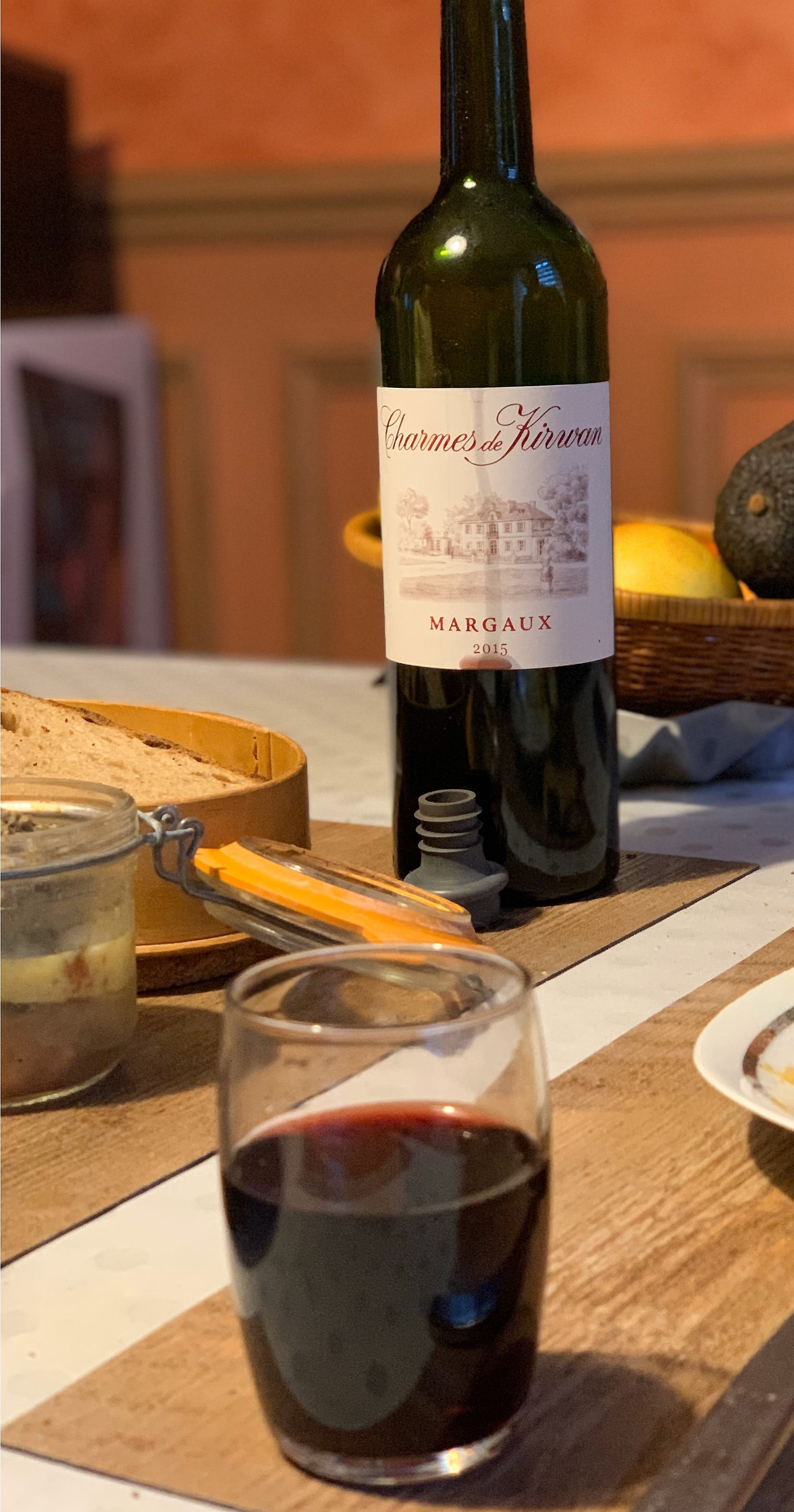 저녁식사 때 자서방이 지하실에서 레드와인 한 병을 가져왔다.