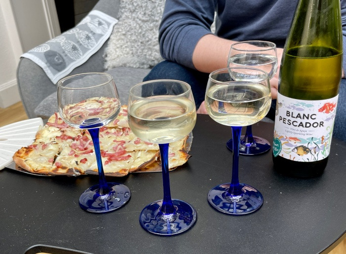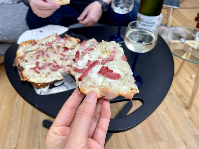 맛있는 플람키쉬! 나는 이틀 연속으로 시댁에 와서 먹고 있는 중인데 이건 매일 먹어도 안 질릴 것 같다. 우리는 시부모님께서 세비아 여행 중에 사 오신 이탈리아 화이트와인도 함께 맛보았다.
