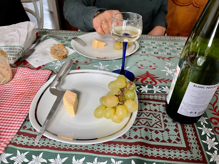 식사 후에 나는 멍스테르 치즈를 한 조각 먹고, 옆에 과일 바구니에 있던 청포도도 한송이 꺼내먹었다.