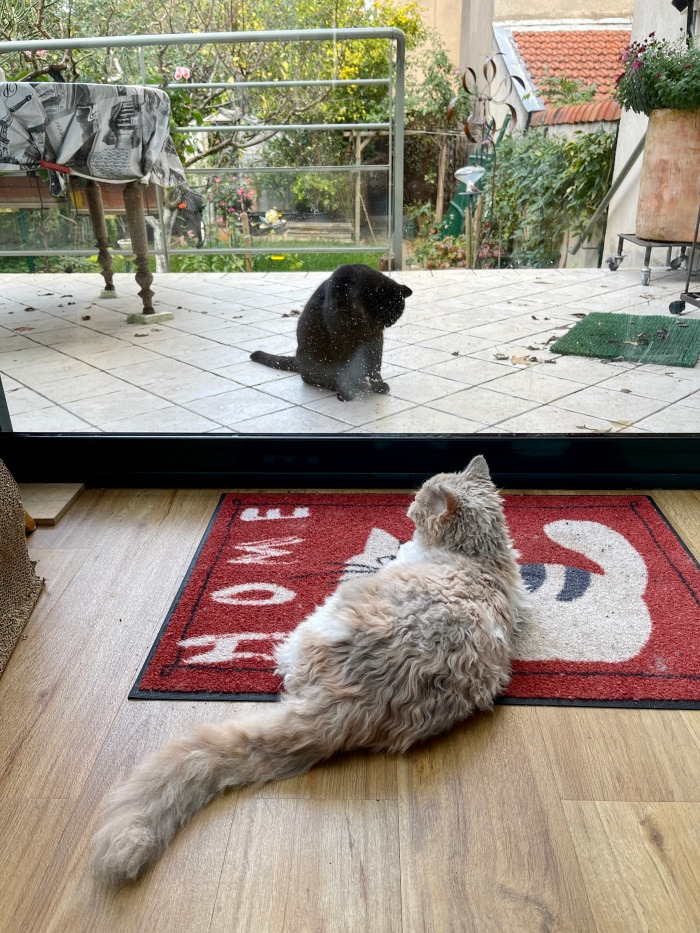 그렇다. 모웬은 노!라고 말하면 하던 짓을 바로 멈췄는데 아기 고양이 탈린의 귀에는 아무것도 안 들어가는 것 같다. 모웬이 보고 싶은 건 변함없지만 탈린의 해맑음은 보기만 해도 그저 즐겁다. (아버님은 탈린이 엎은 화분을 치우시느라 종종 애를 드신다.)