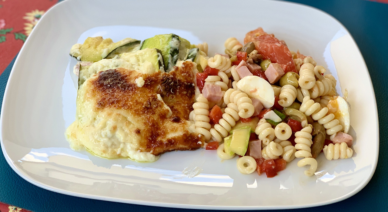 이건 쥬키니에 크림소스와 치즈를 넣고 만드신 그라탱이다. 맨 위에 고소하게 익은 저 치즈가 얼마나 맛있던지!