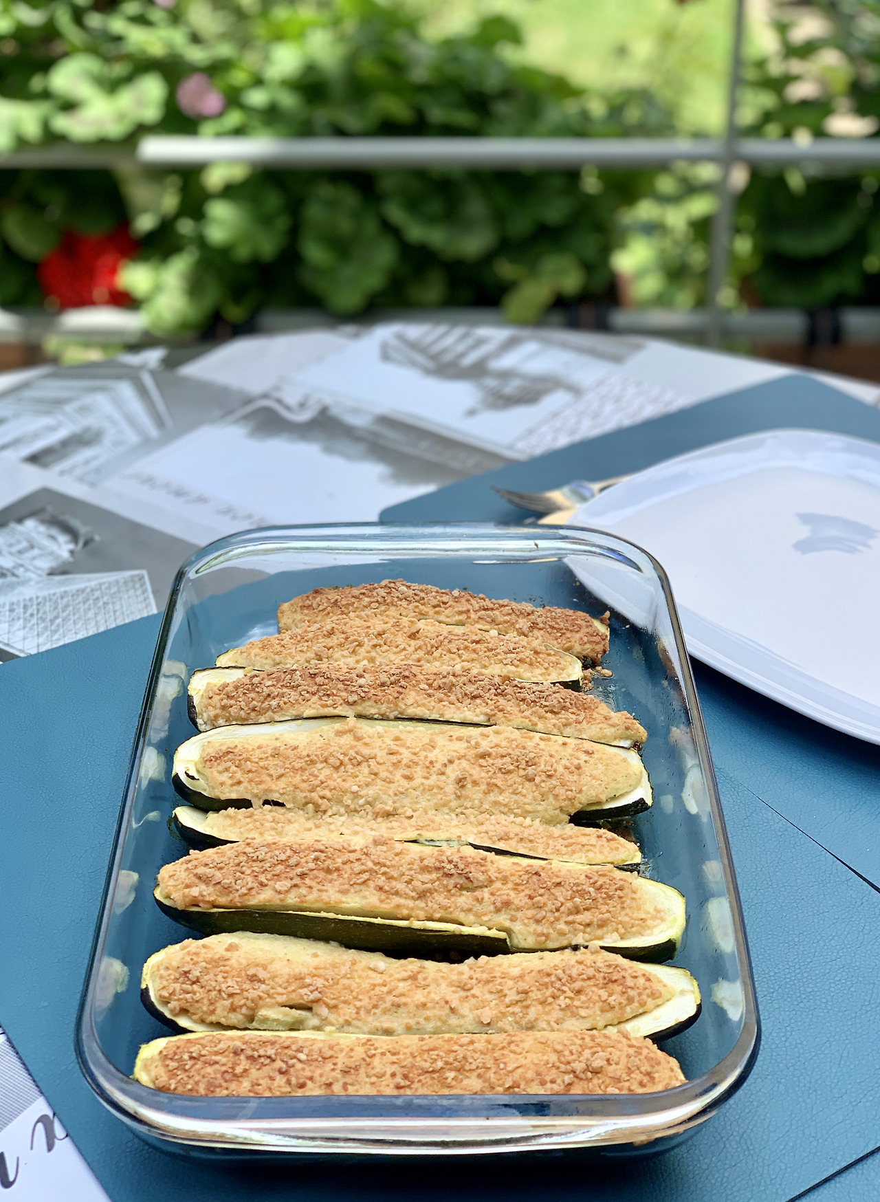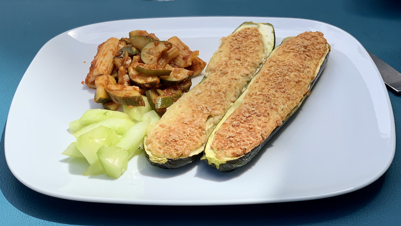가지처럼 생겼지만 저건 쥬키니다. 쥬키니의 속을 파내고 그 속을 다져서 계란, 빵가루, 치즈 등을 섞어서 채우셨다. 이건 유튜브 선생님으로부터 배웠다고 하셨는데 새로운 맛이었다.