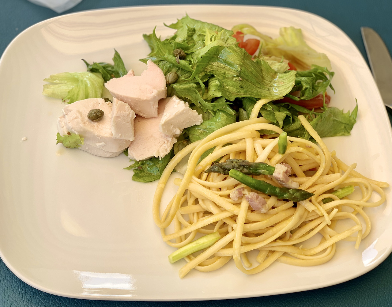 자서방이 출근하고 없는 낮에는 시부모님과 셋이서 생선을 자주 먹었다. 날이 더워지면서 냉파스타도 자주 먹었다.