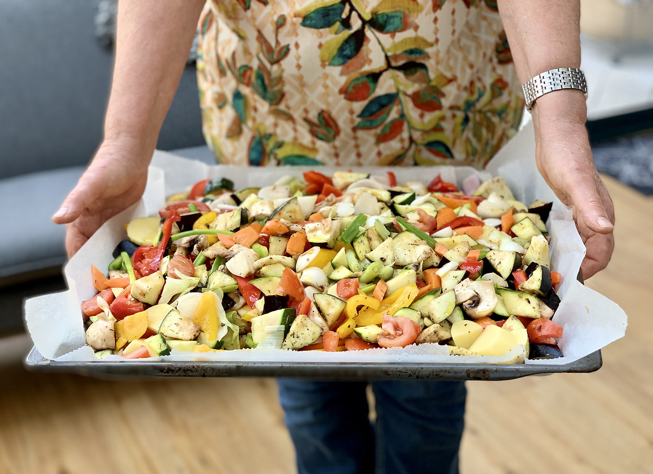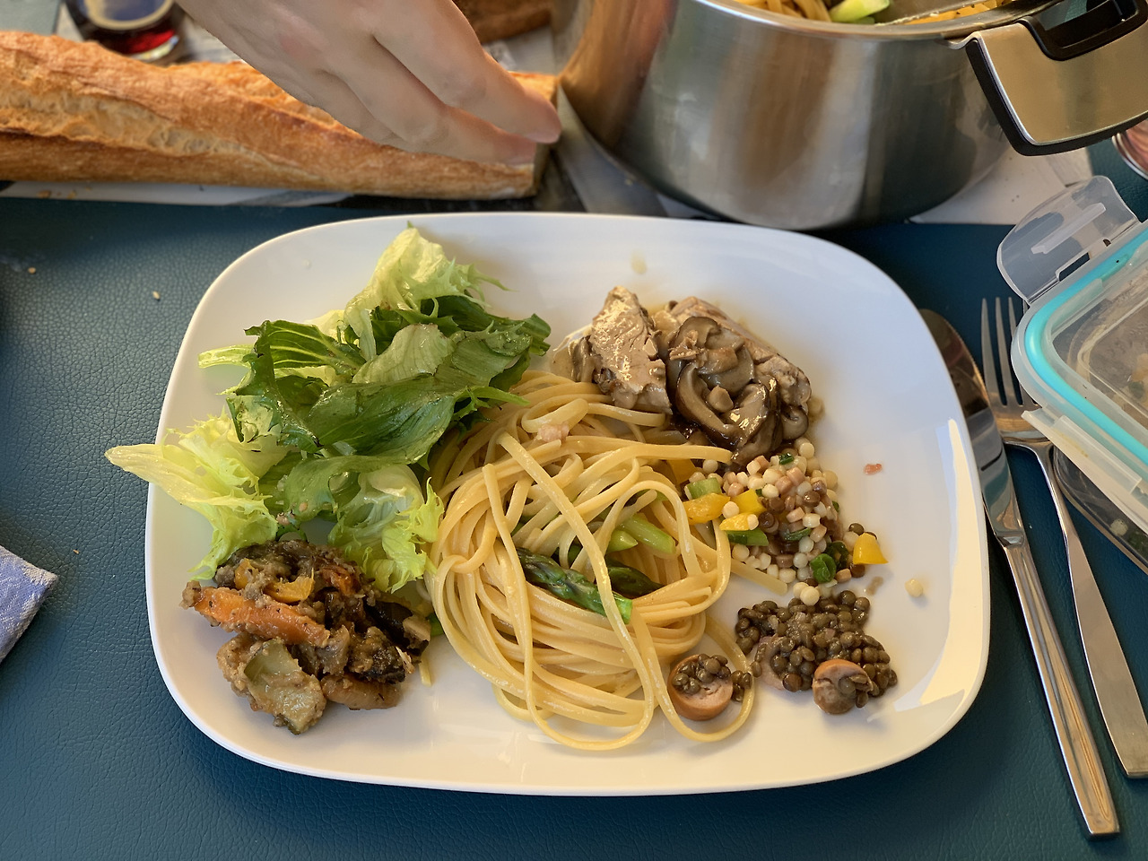 야채 오븐구이, 표고버섯을 잔뜩 넣고 만든 비프 브루기뇽, 렌틸 그리고 아스파라거스를 넣은 파스타.