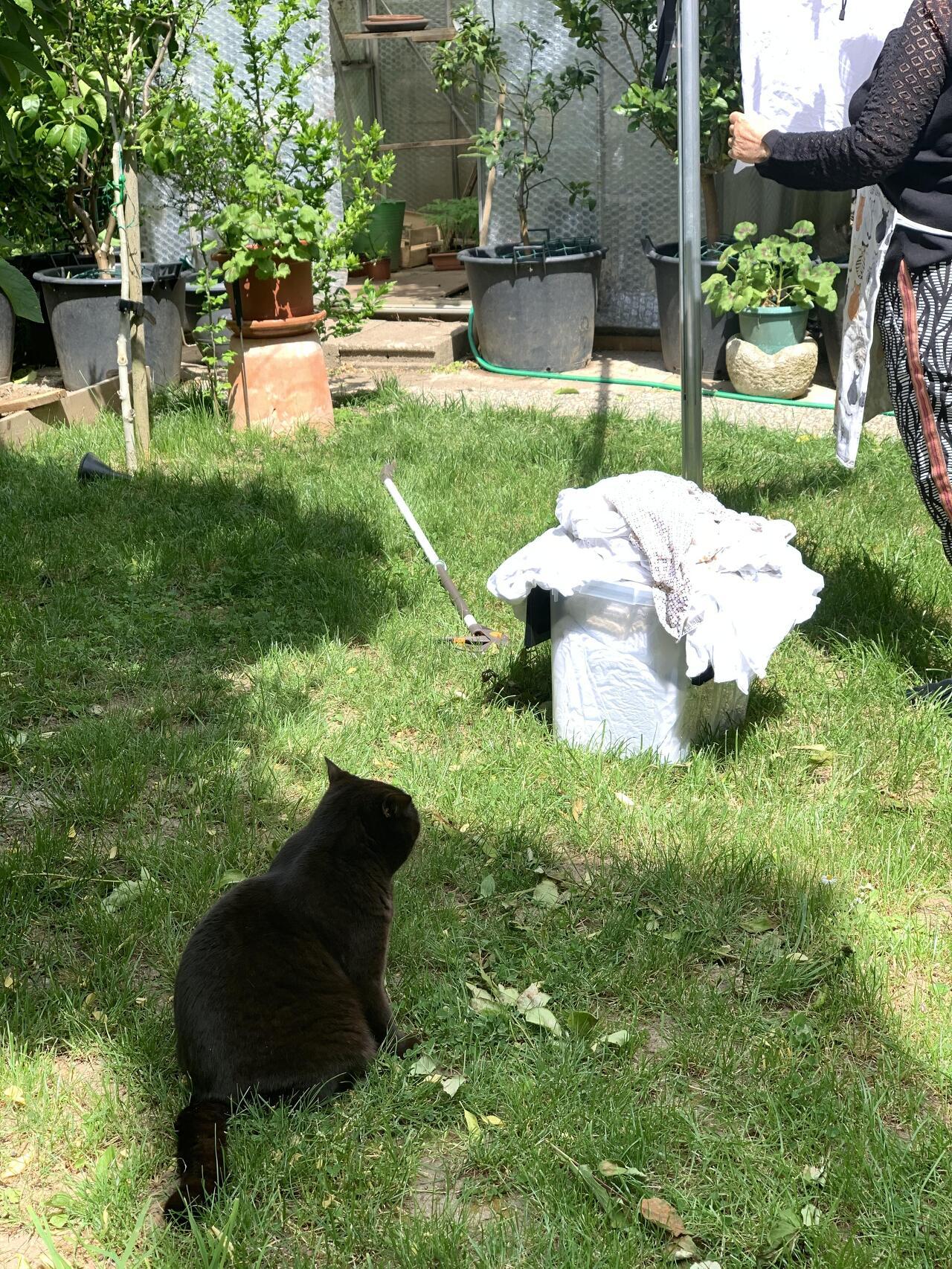 세탁된 빨래들을 널기 위해 정원으로 나가면 어김없이 이스탄불이 달려온다. 그리고 옆에 앉아서 끝까지 구경한다. 모웬은 빨래를 너는데는 관심이 없고 오히려 빨래를 갤 때 더 좋아한다.