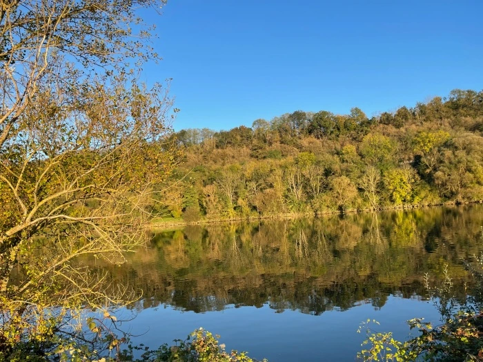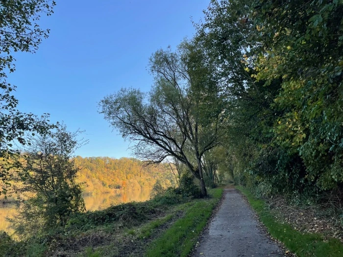 바스락거리는 낙엽 밟는 소리도 좋고 우리 옆에 넘실거리는 강 풍경도 좋다.