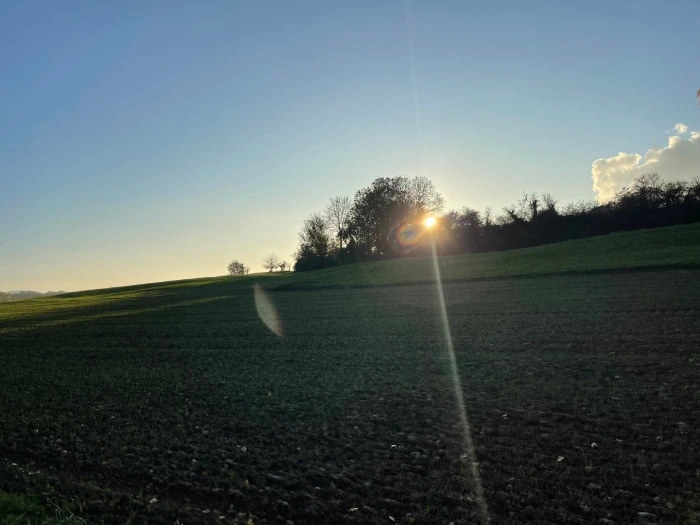 우리는 뒤로 돌아서 왔던 길로 되돌아가기 시작했다. 지는 해를 정면으로 맞으면서-