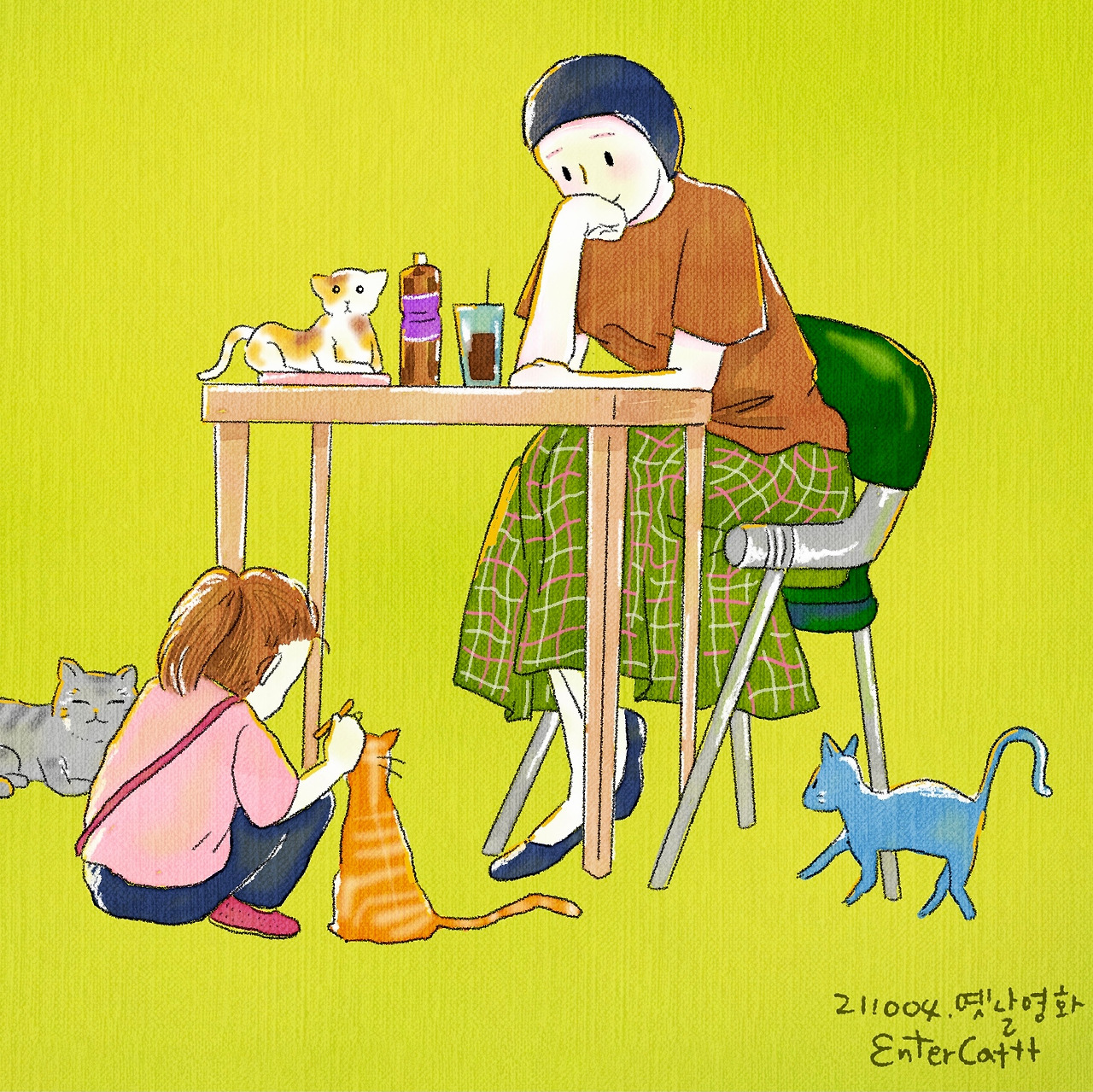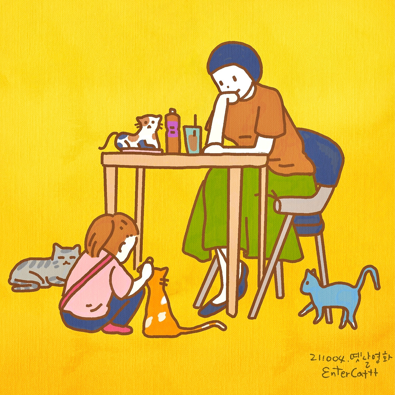 카페에서 놀고 있는데