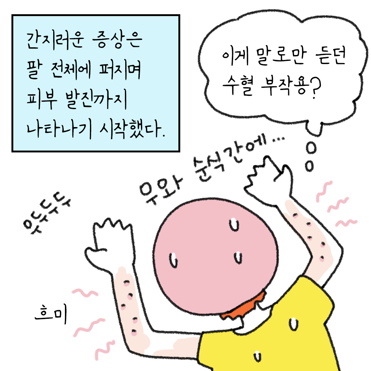 혈소판 수혈 : 부작용(가려움, 두드러기) 발생